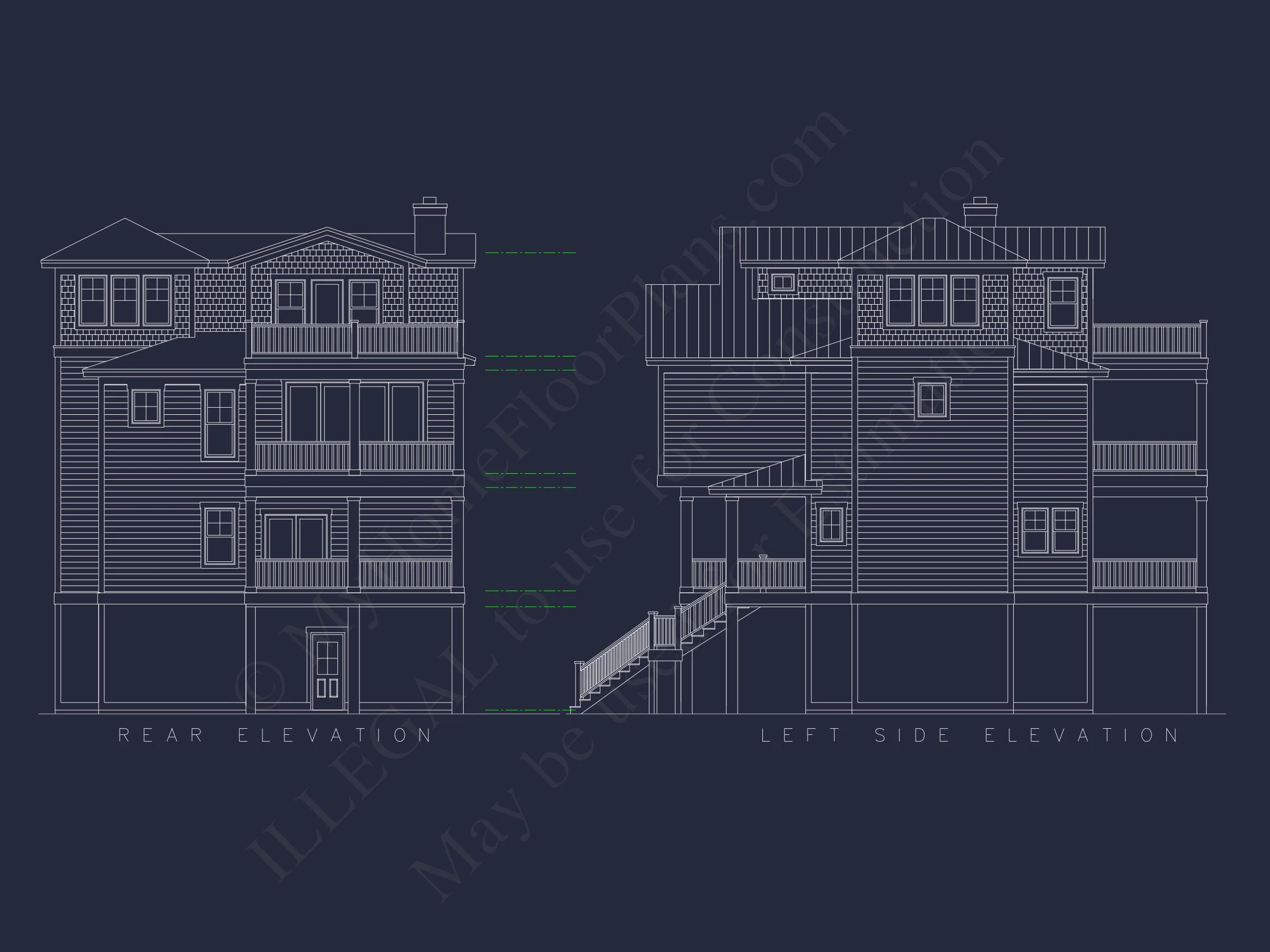 Craftsman coastal house plan • 3 bed • 3 bath • 2811 SF. Open floor plan, elevator, multiple decks. Includes CAD+PDF + unlimited build license.