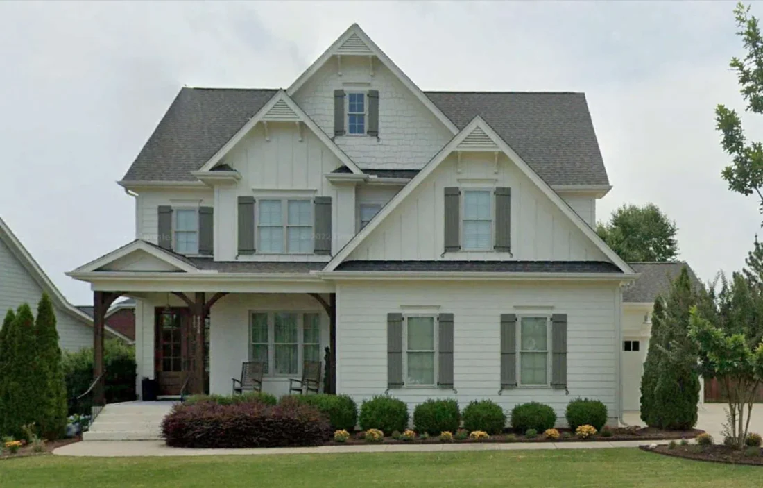 - Exterior materials include board & batten, shake siding, and painted brick for Craftsman charm.