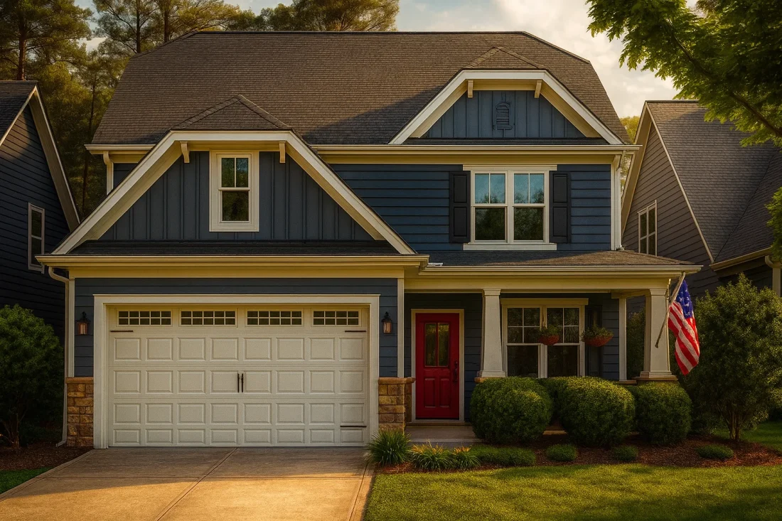 Combining Craftsman detailing with Traditional suburban design, this home blends charm and function. The exterior showcases horizontal lap siding, board-and-batten gables, and stone accents that create a balanced façade. Inside, an open layout connects the great room, dining, and kitchen for seamless living and entertaining.