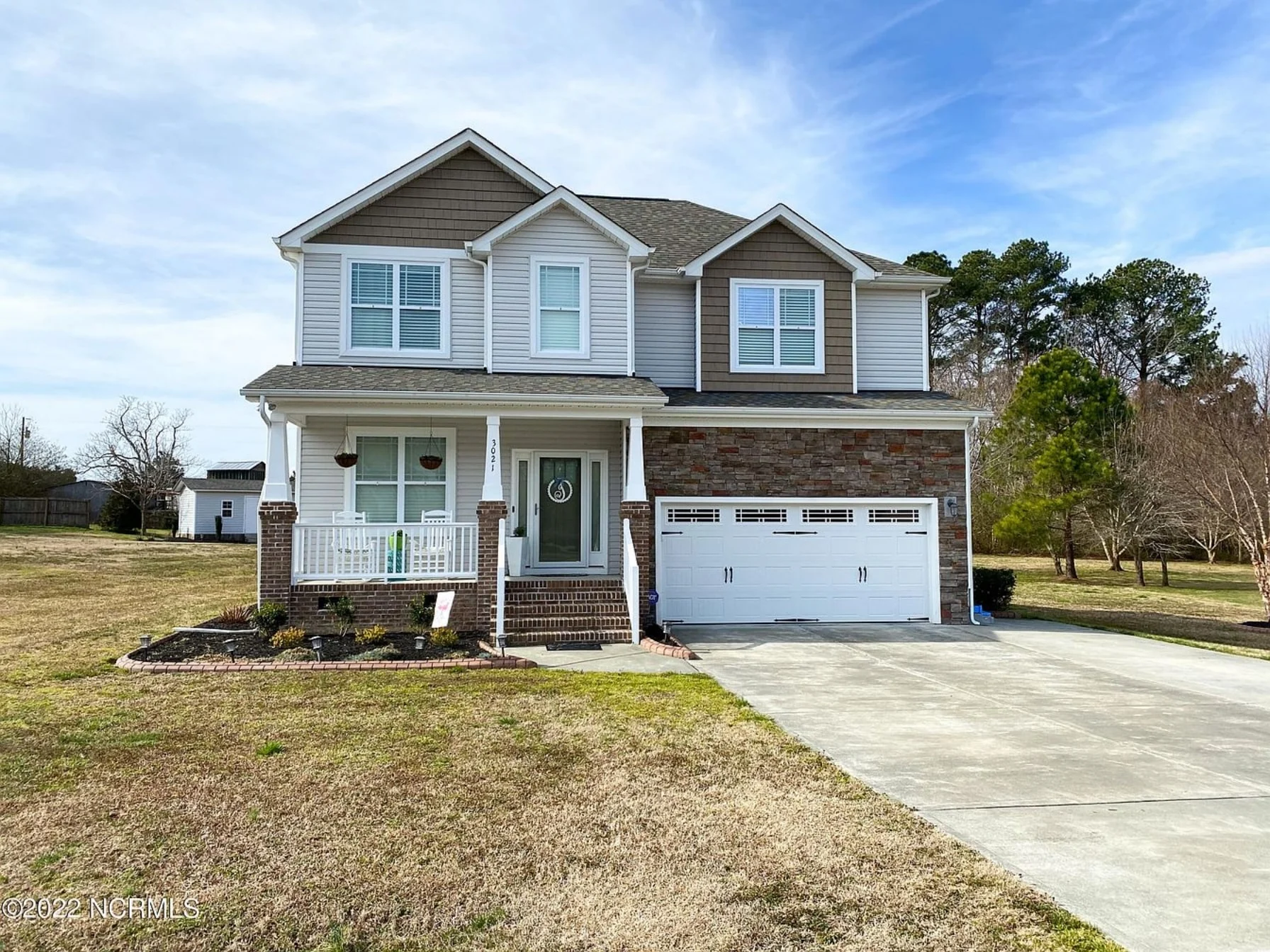- Unheated extras: Covered front and rear porches plus a 2-car front-entry garage.
