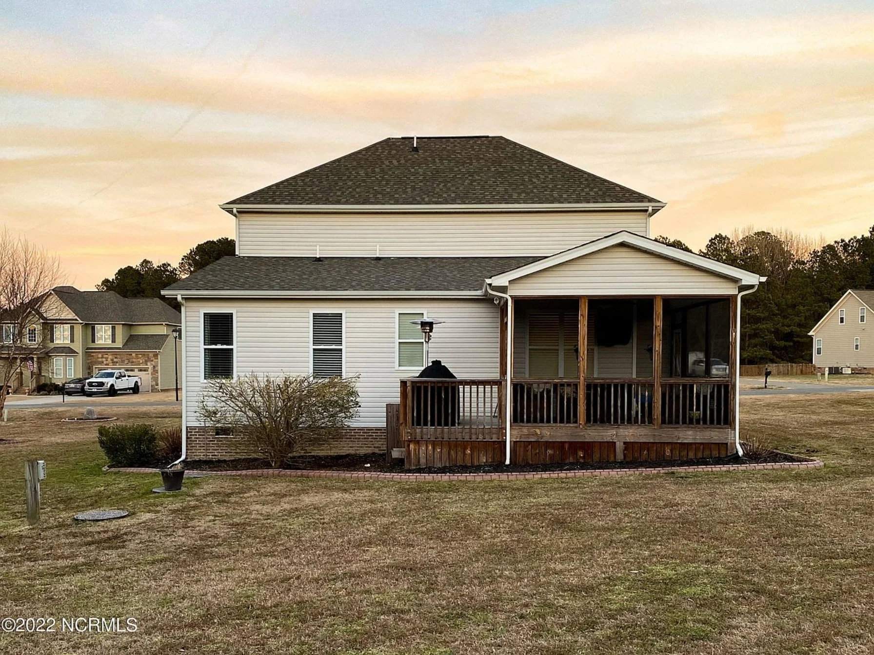 - Covered rear porch for outdoor dining and relaxation.