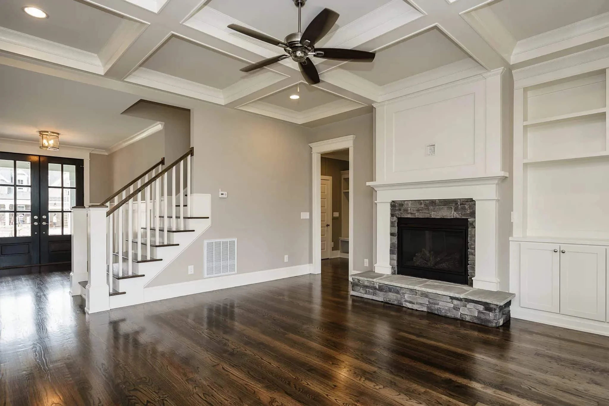 - Inviting foyer sets a warm and stylish tone upon entry.