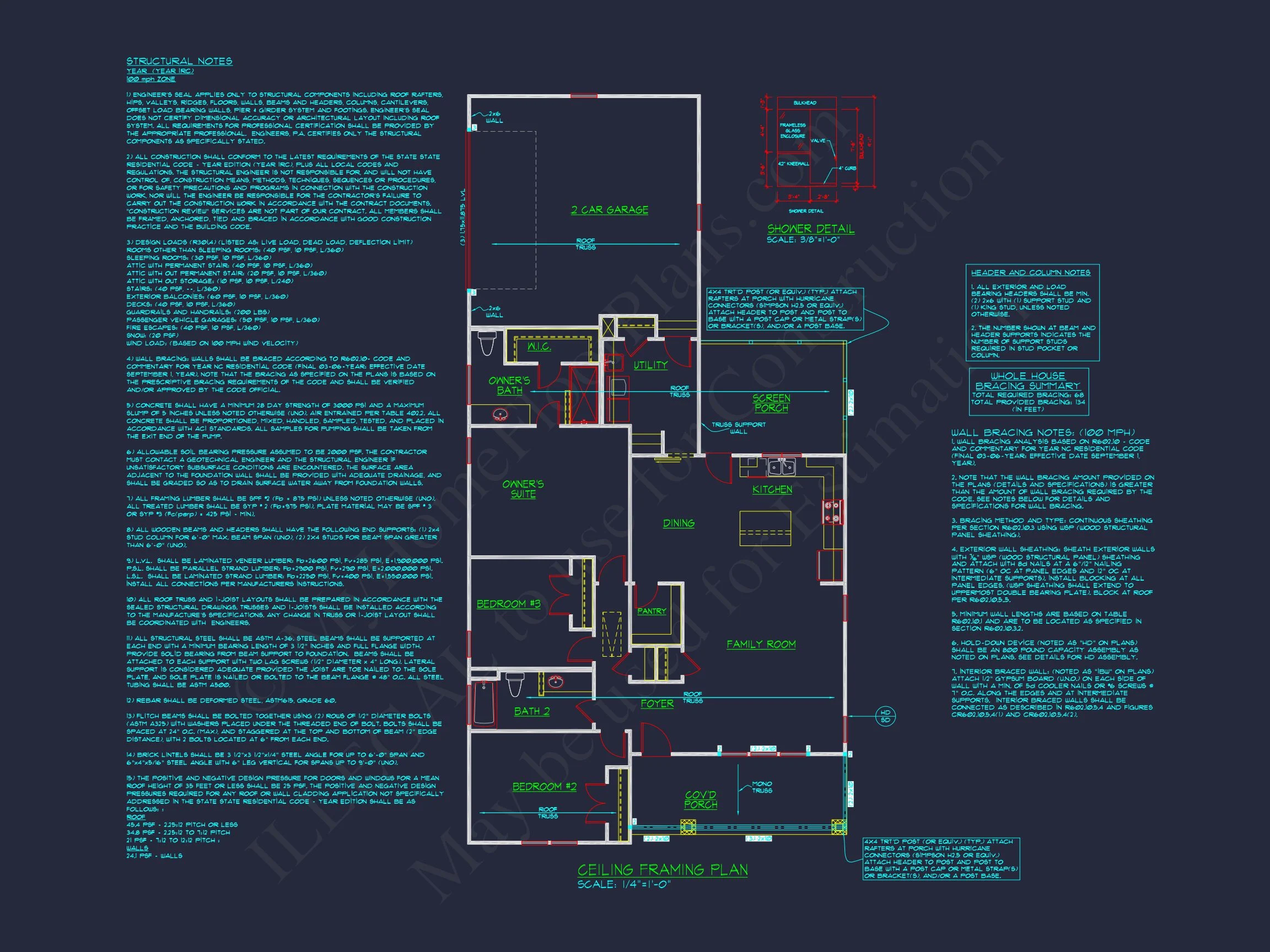 - Structural Engineering – Included with every plan unless not shown in the product images. Very helpful and reduces engineering time dramatically for any state. *All plans must be approved by engineer licensed in state of build*