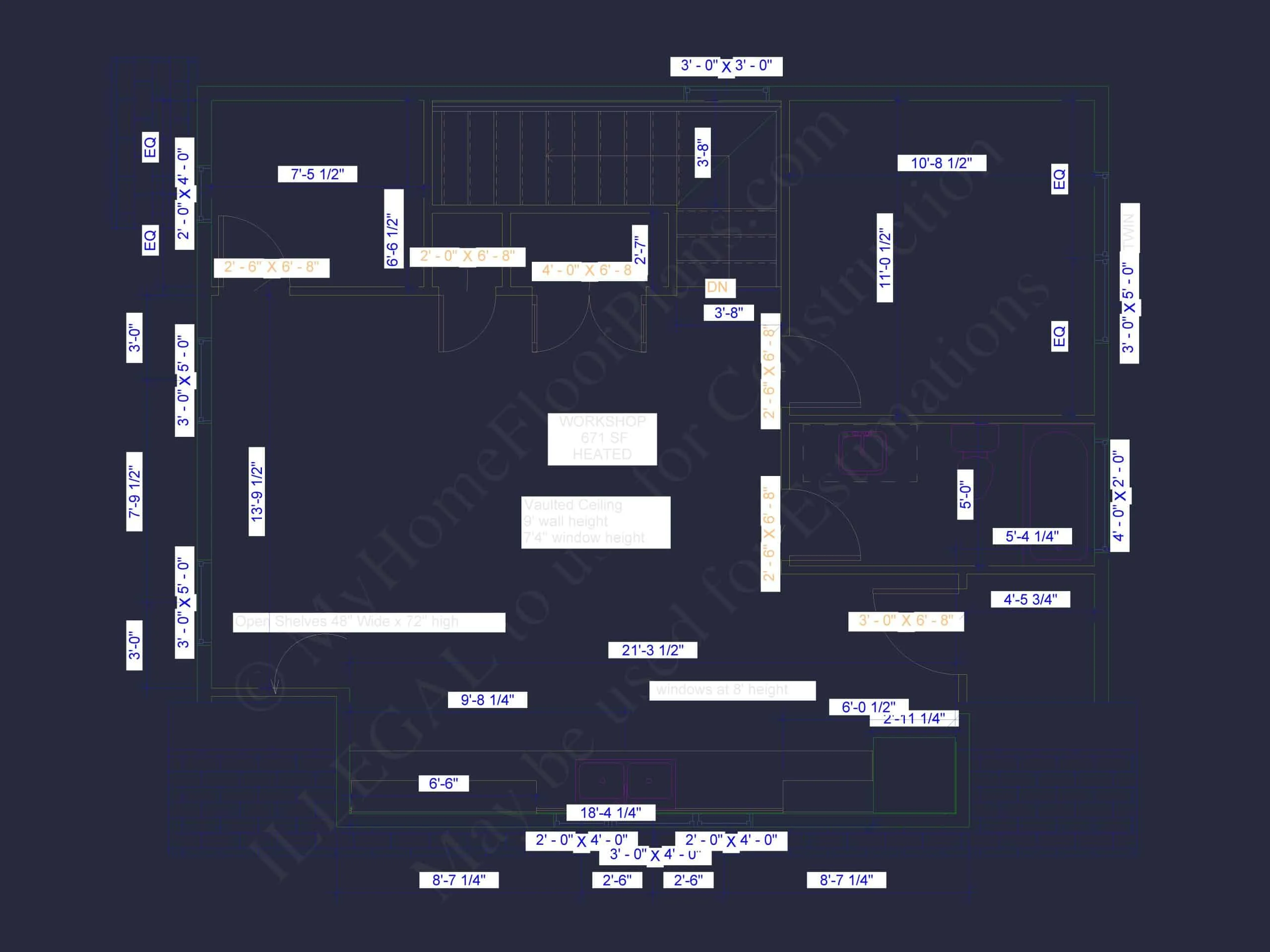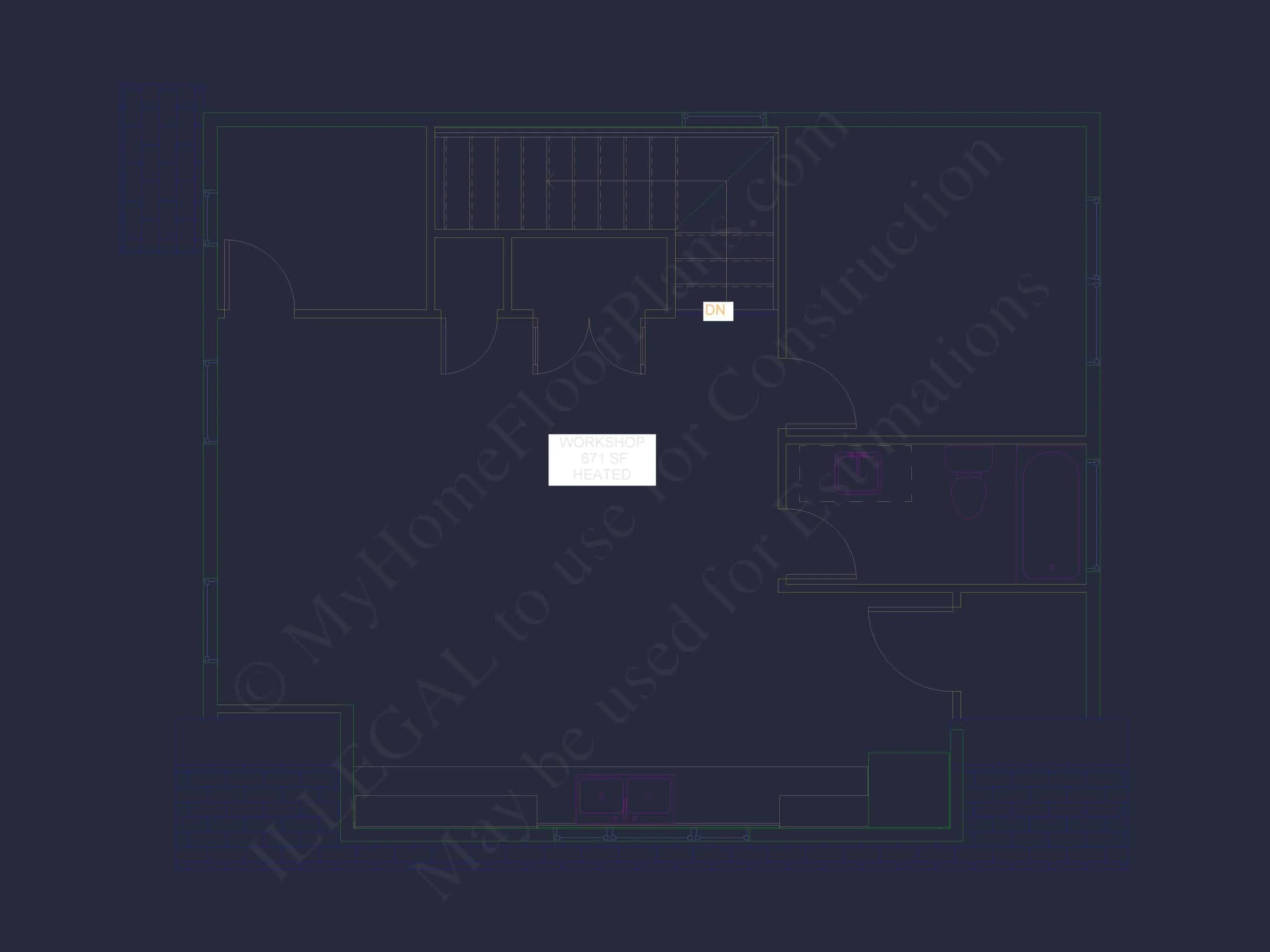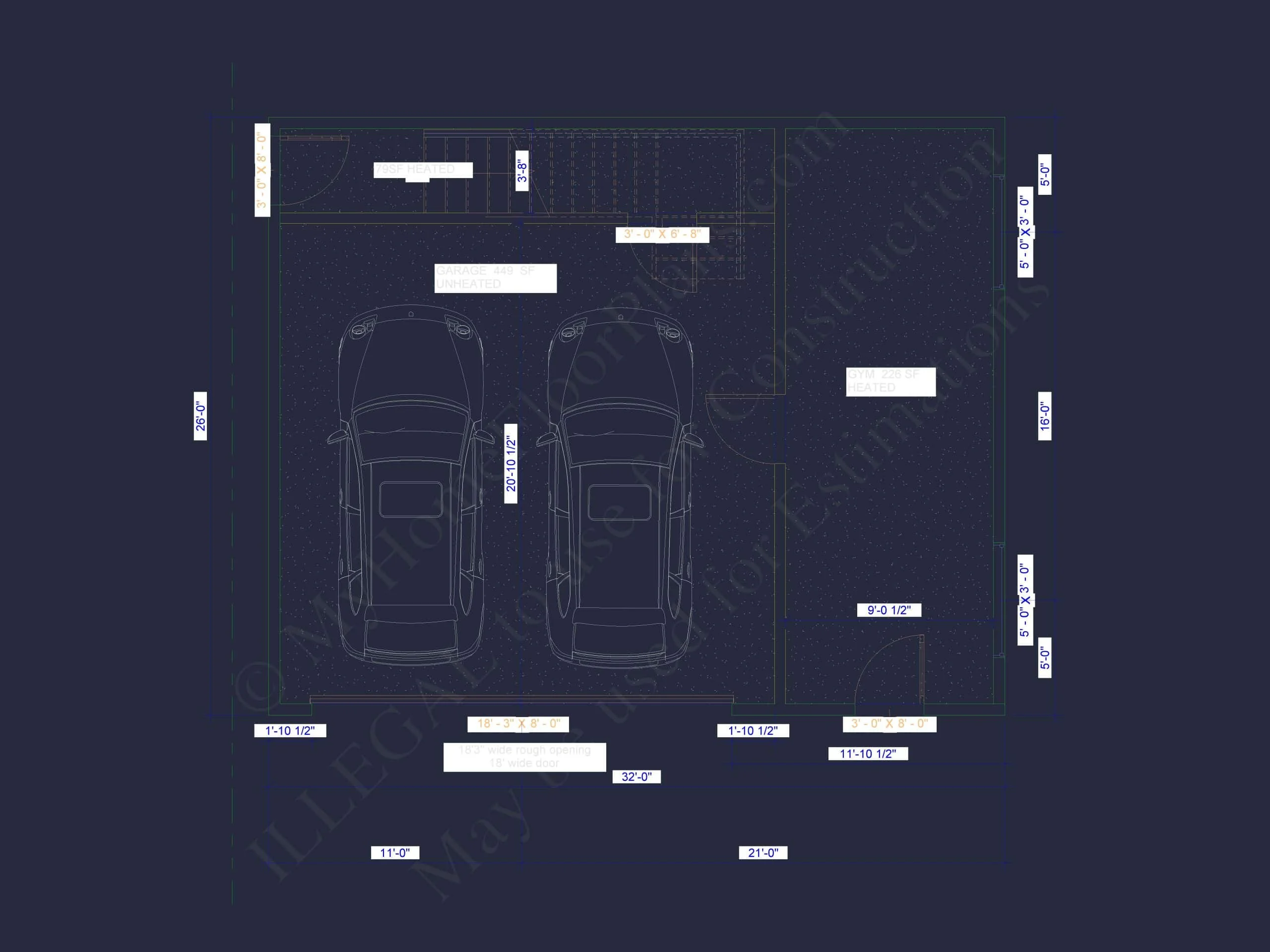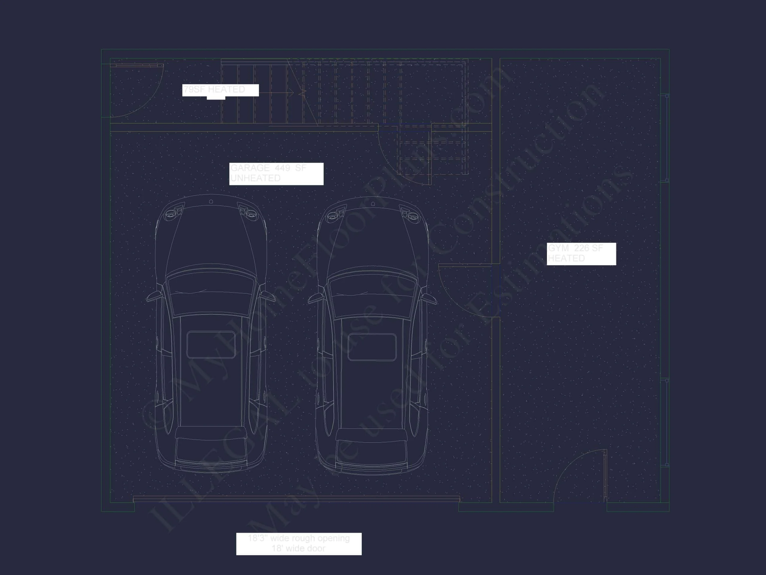 Does this include heating and cooling specs? Yes. The heated areas (gym and workshop) are designed with HVAC zones outlined in the blueprints.