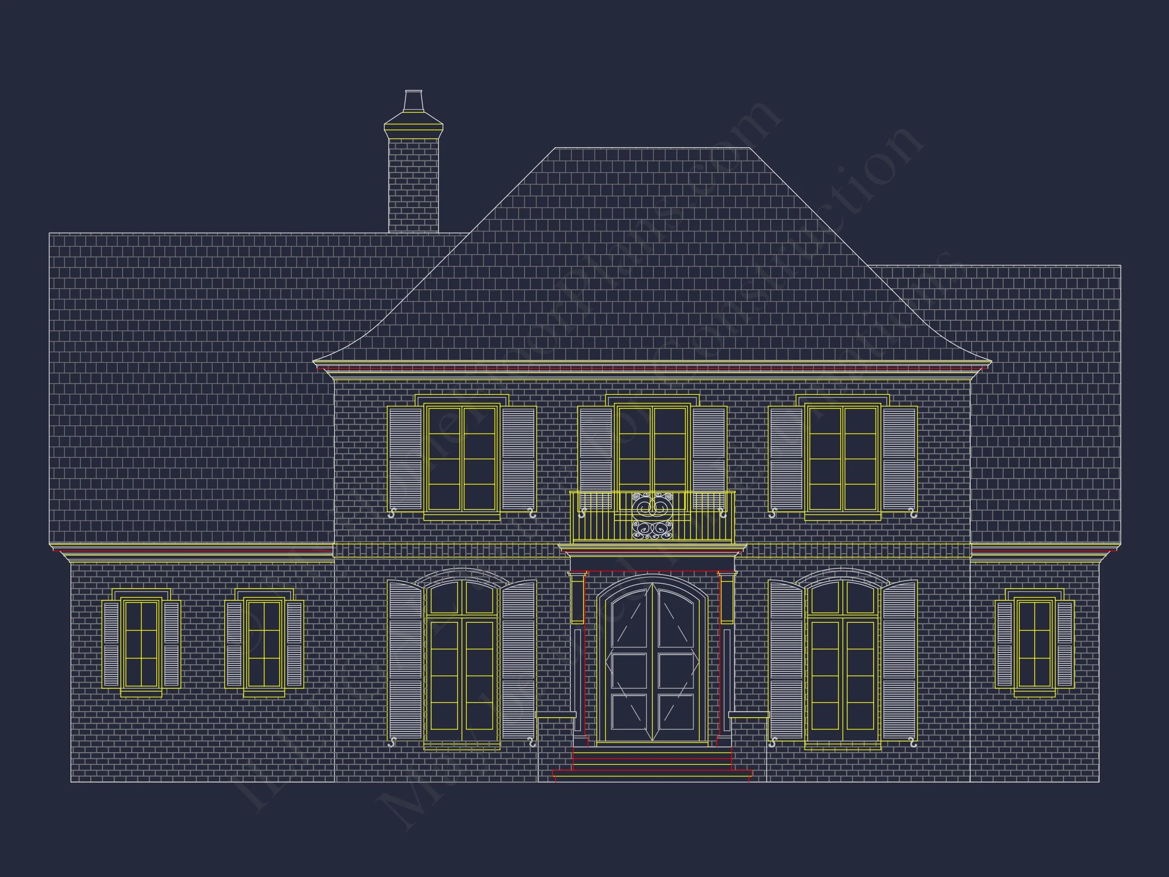 Discover this French Country house plan with 4,458 heated sq. ft., 2 stories, 5 bedrooms, and an open layout—includes CAD blueprints, covered porches, and modern design features.