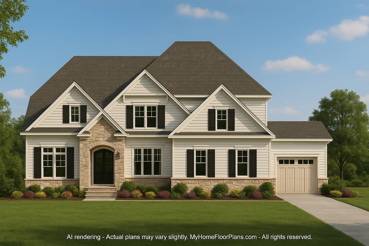- Classic shake siding and stone accents for lasting Craftsman curb appeal.