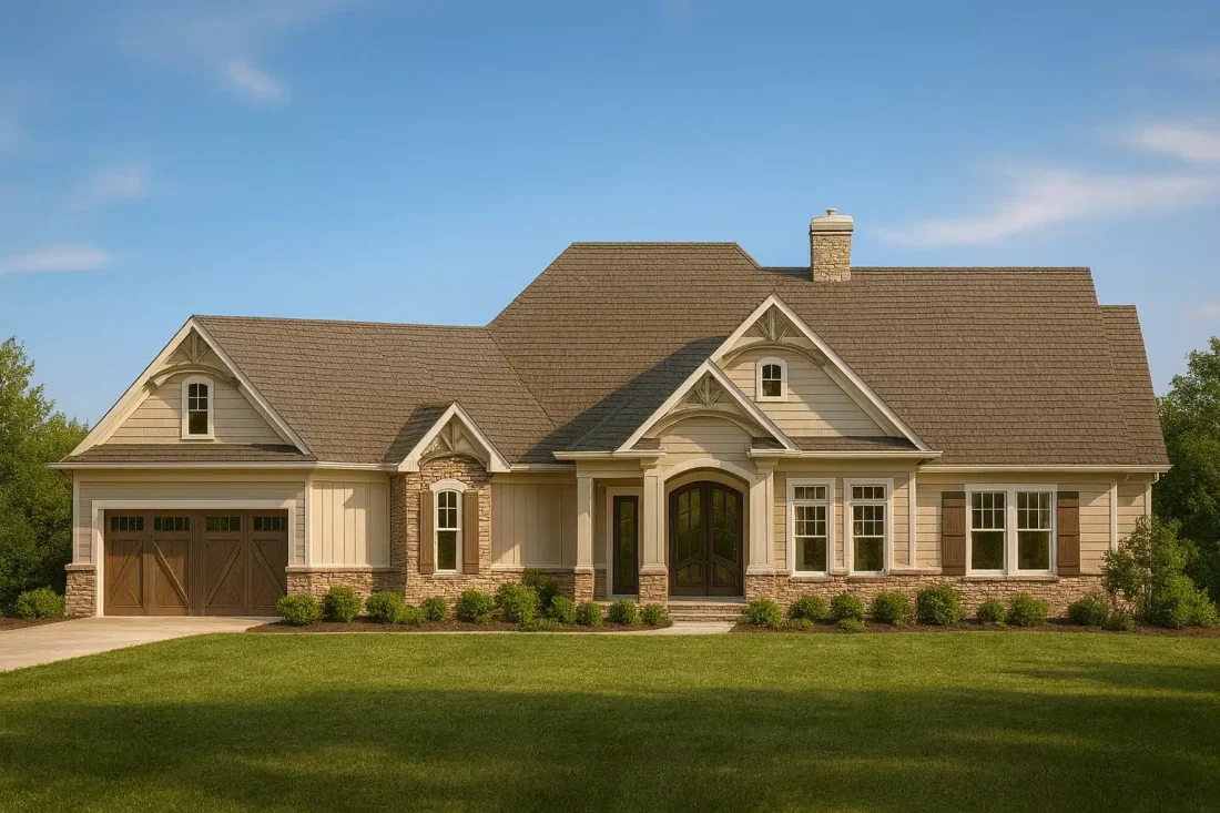 This design blends timeless materials like shakes, shingles, and stone with clean lines and gabled roofs—perfect for families who value character and efficiency in one package. Learn more about the Craftsman style or explore its roots on ArchDaily.