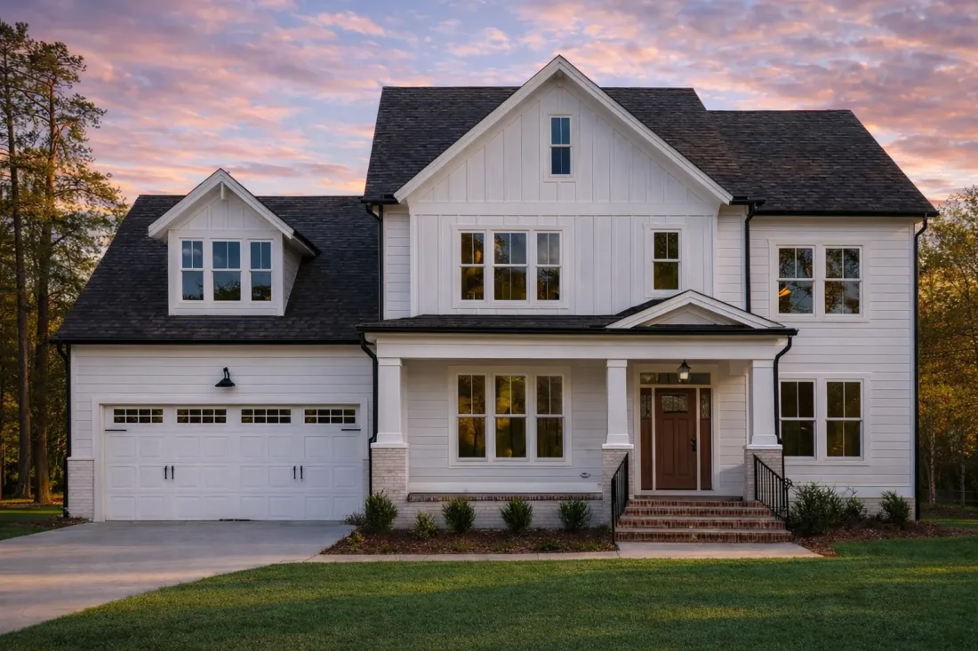 This combination of materials allows the home to age gracefully, maintaining curb appeal for decades while remaining adaptable to regional finishes and color palettes.