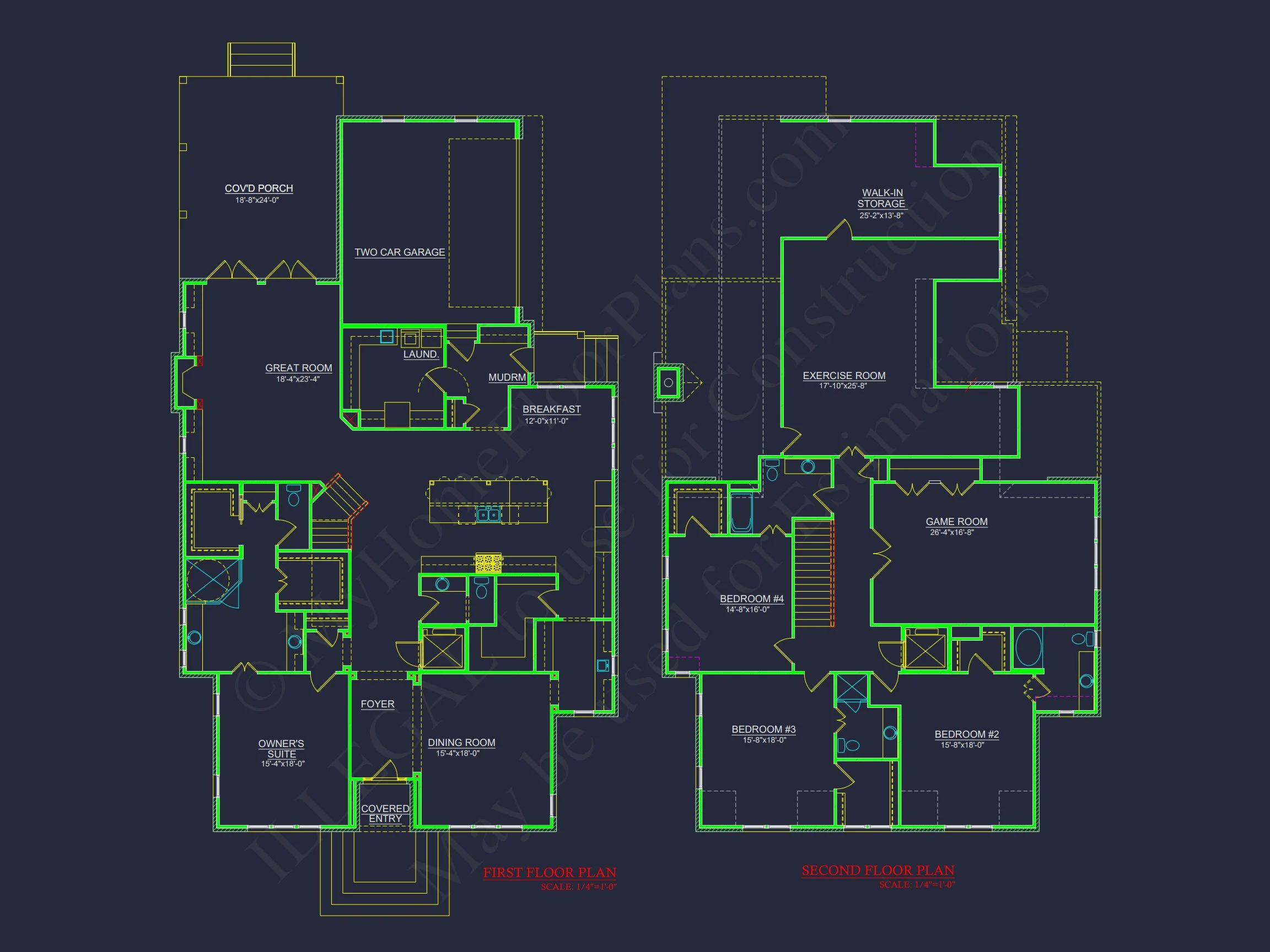 This 2-story architectural house plan features a functional layout with 4 bedrooms, 5+ baths, and a spacious open floor plan. Includes detailed CAD blueprints.