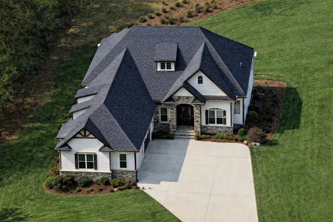 - Roof Design: Steep hip roof with architectural shingles