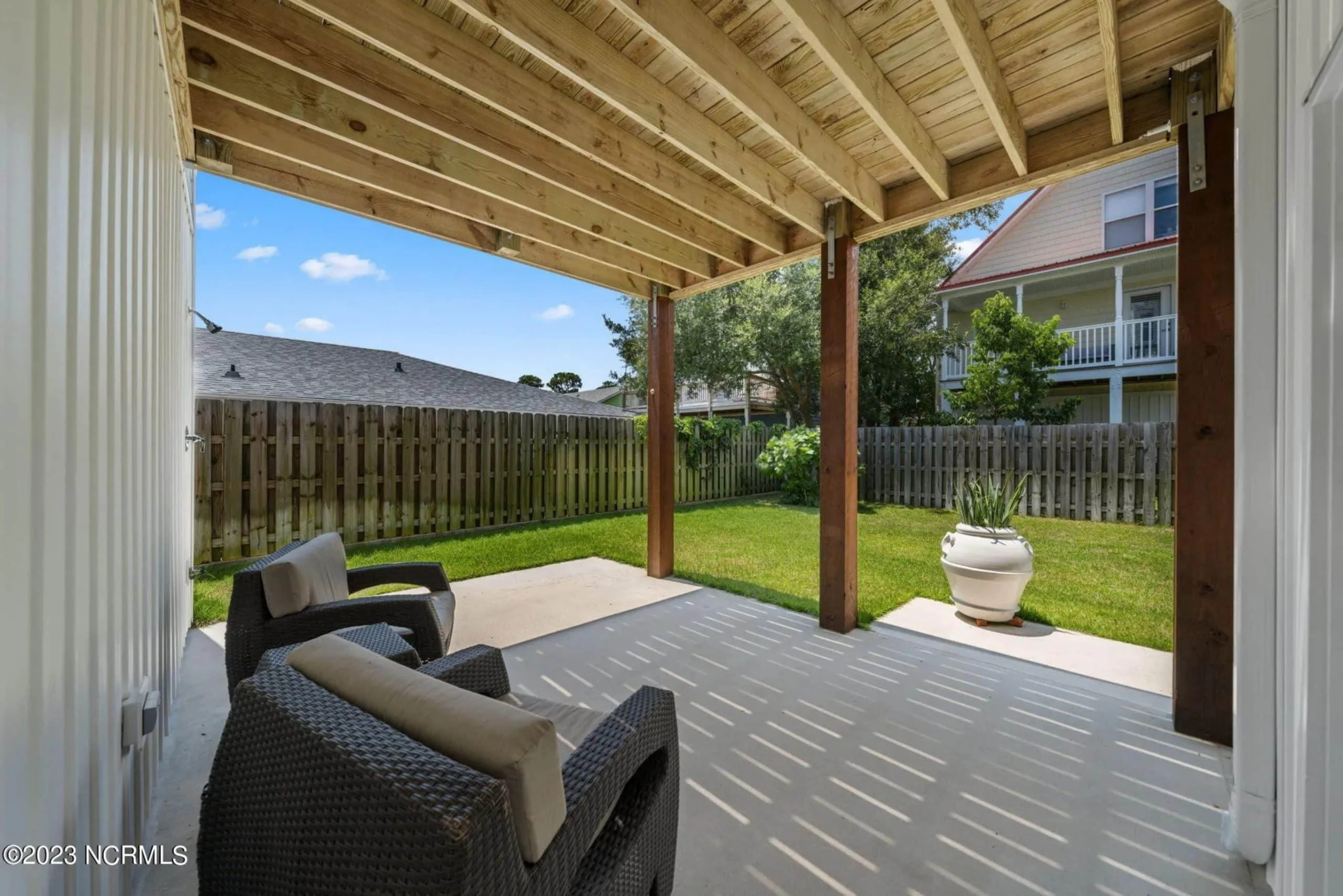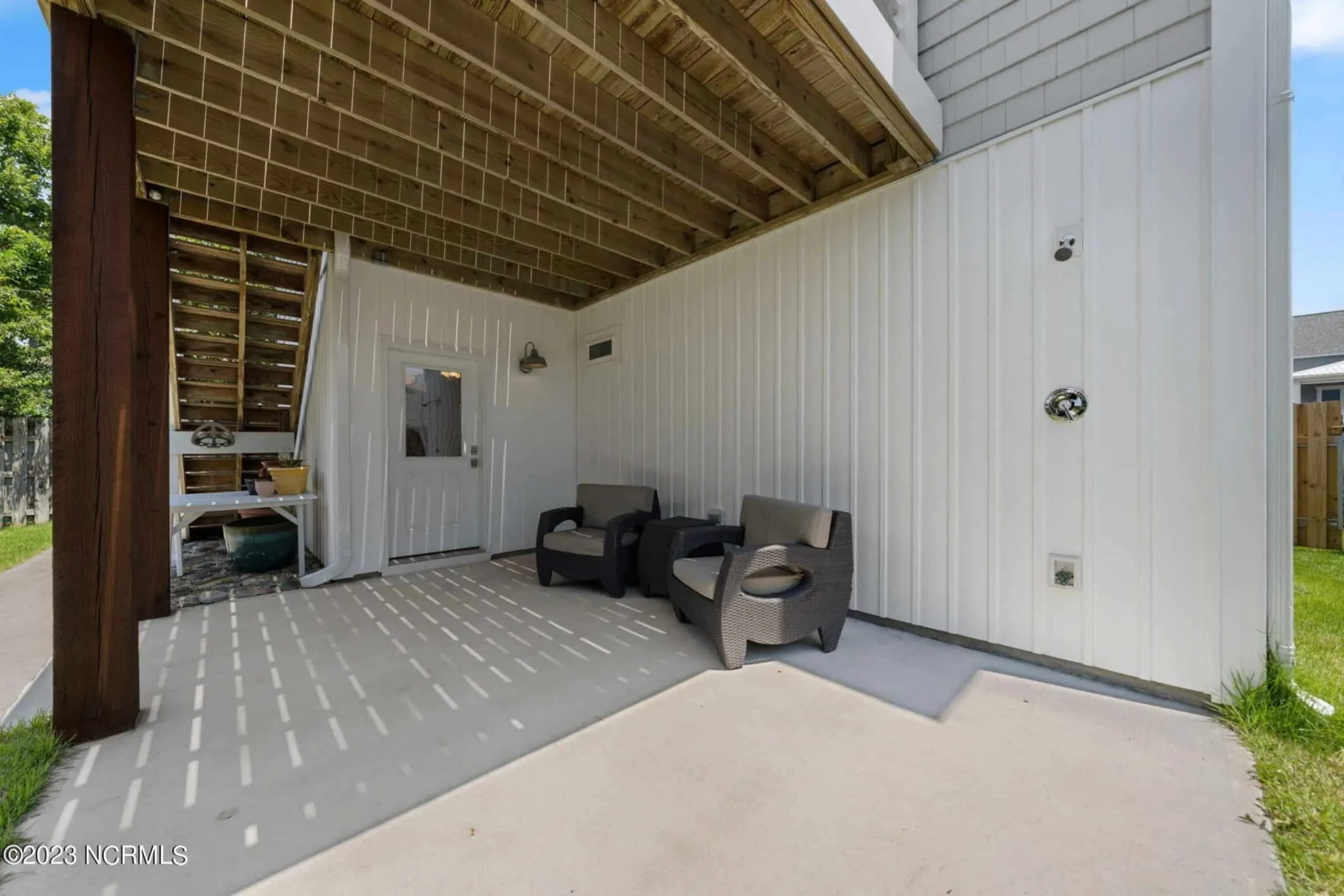 - Covered front porch and upper-level deck offer stunning coastal views and fresh air.