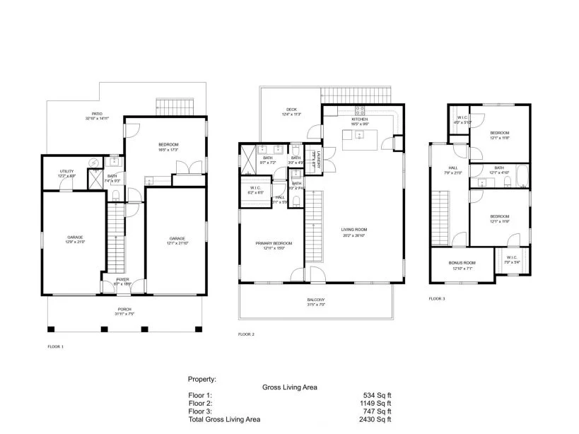 - Heated area: 2,430 sq. ft. across three well-planned stories.