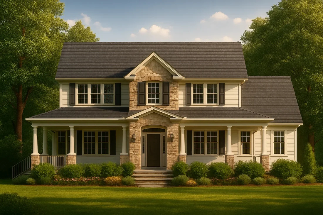 This plan represents one of America’s most enduring architectural legacies. The Traditional Colonial home is known for its symmetry, two-story format, and efficient floor plan that places family and function at its heart. Perfect for suburban settings, it merges classical design with modern living—offering timeless curb appeal and spacious interiors that adapt to modern life.