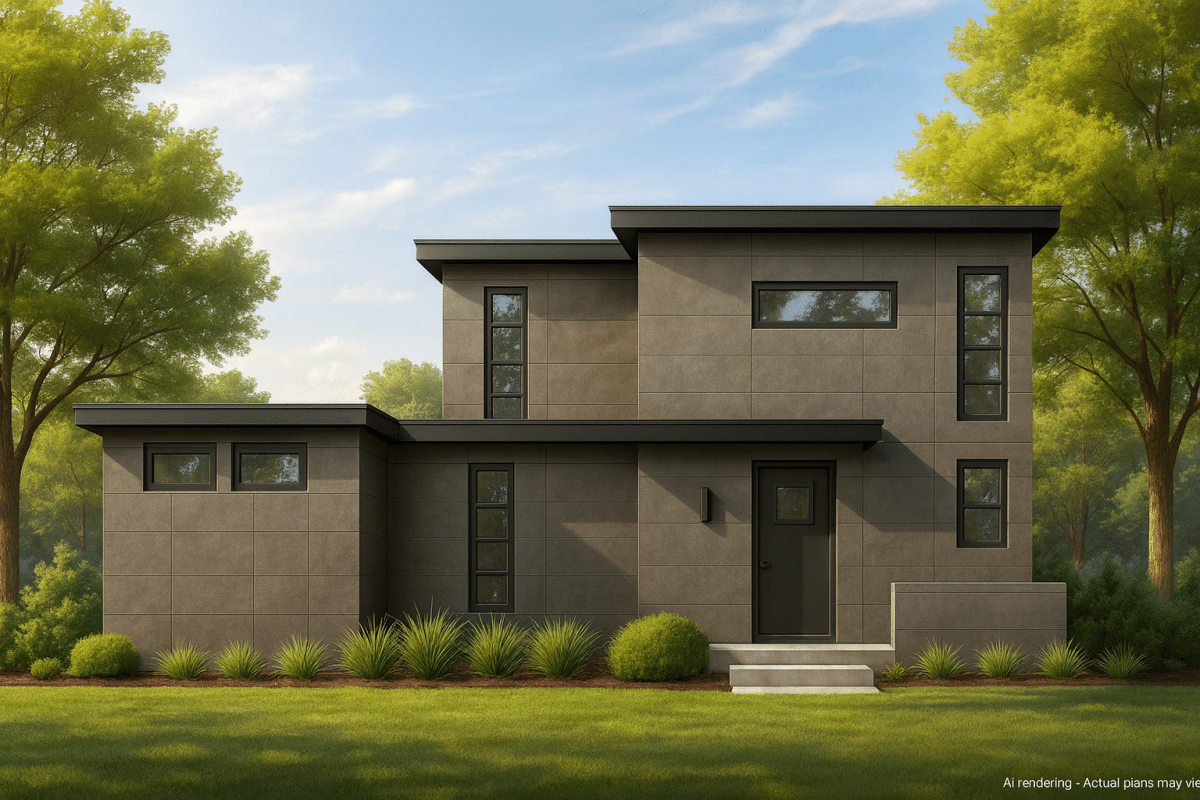 Modern Contemporary 2-Story Home Plan with Concrete Exterior and Open Layout