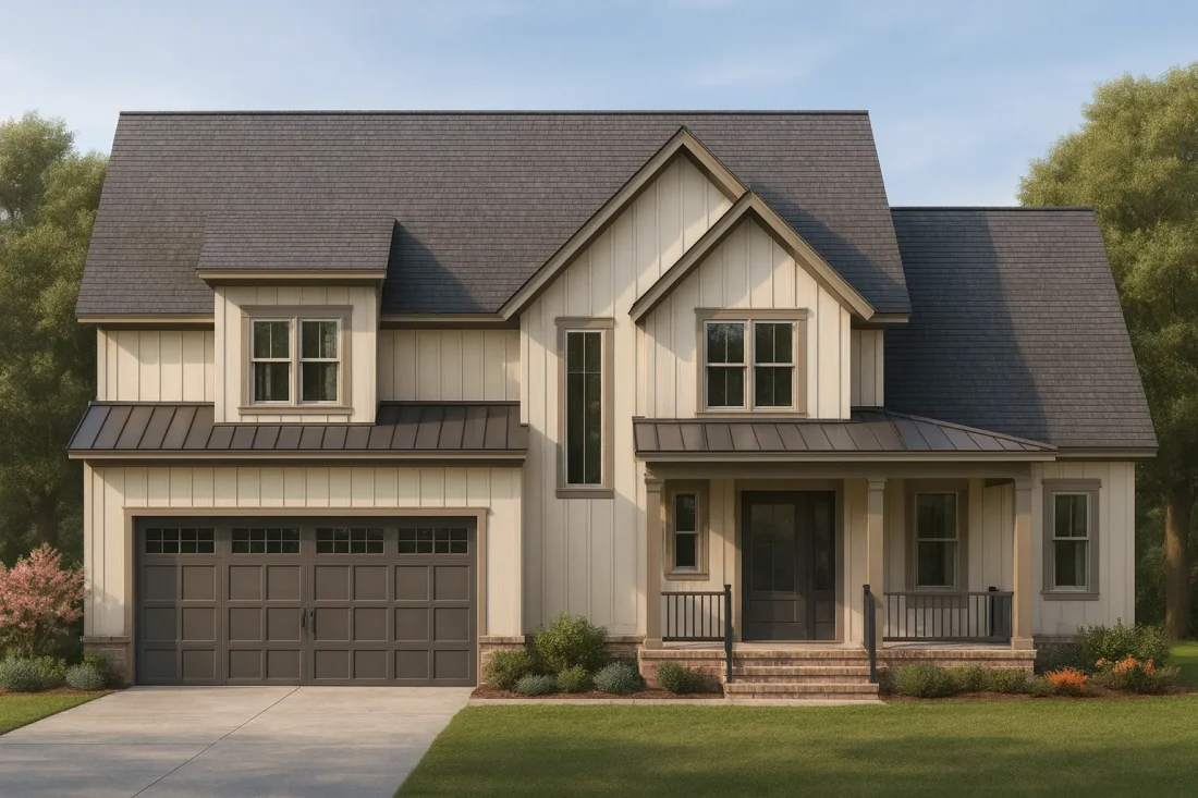 Modern Farmhouse House Plan with Classic Board and Batten Exterior