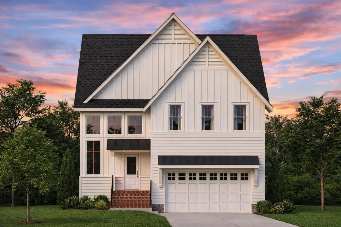 - Board and batten siding for vertical emphasis and modern farmhouse-adjacent appeal