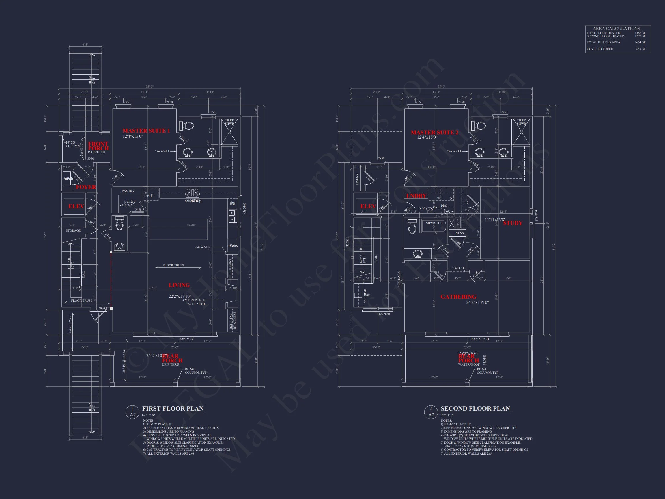 - Heated area: 2,664 sq. ft. across two stories.