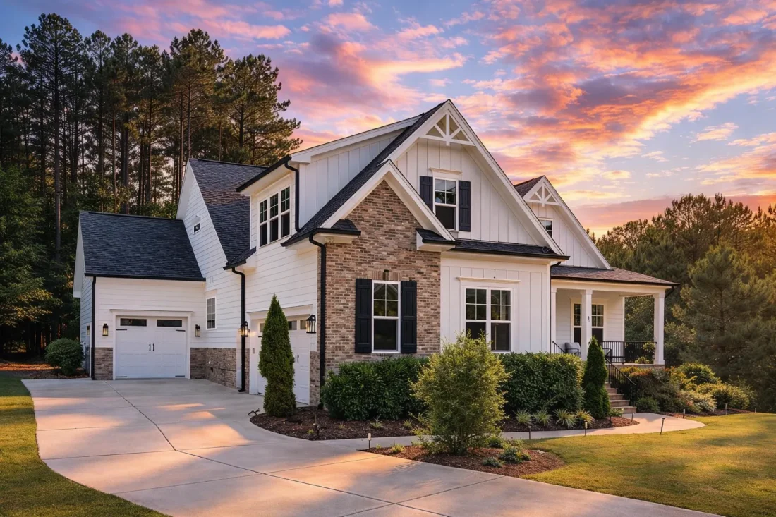 - Board-and-batten accents in the gables for vertical contrast
