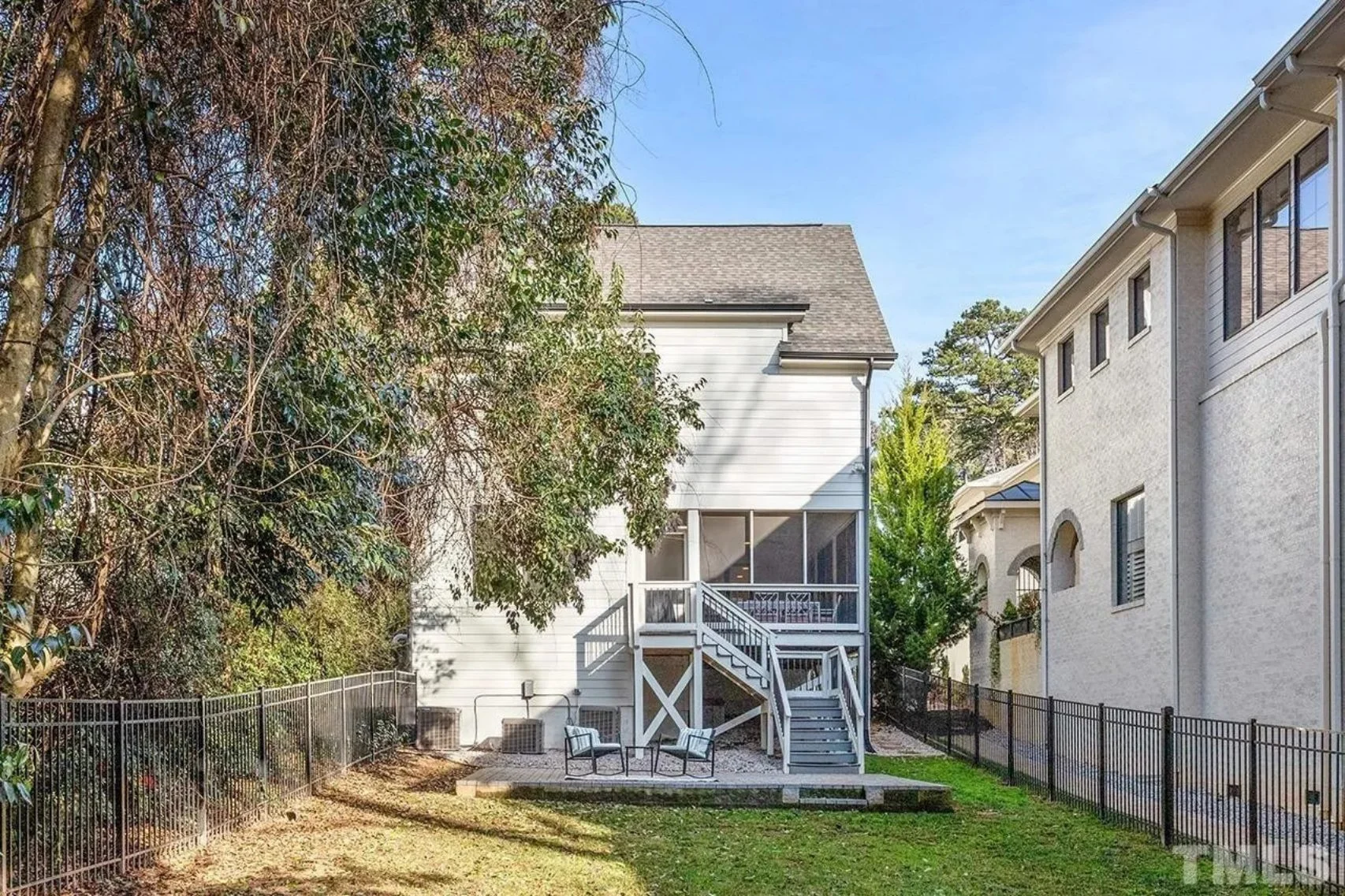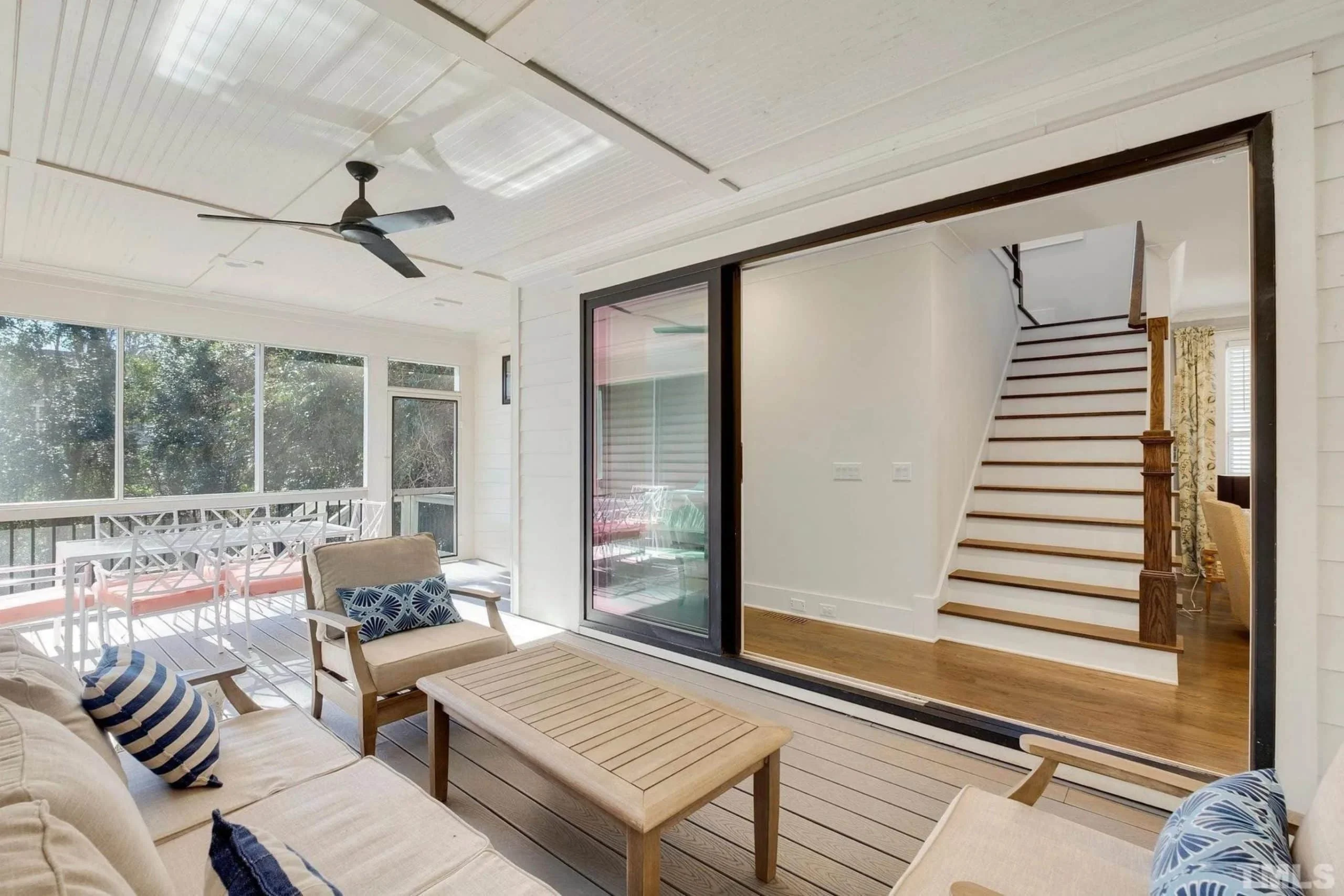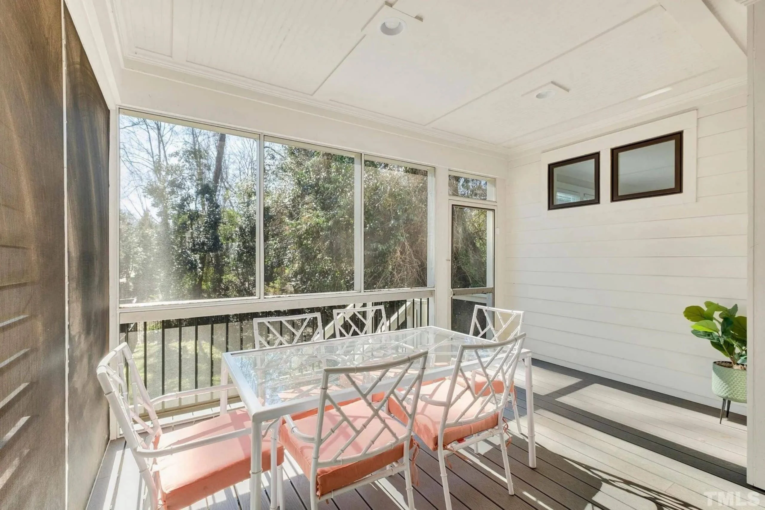 - Covered rear porch and deck create serene spaces for outdoor dining and entertaining.