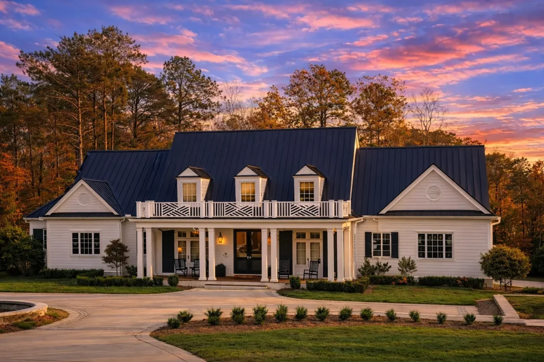 - Standing-seam metal roof for Southern authenticity and longevity