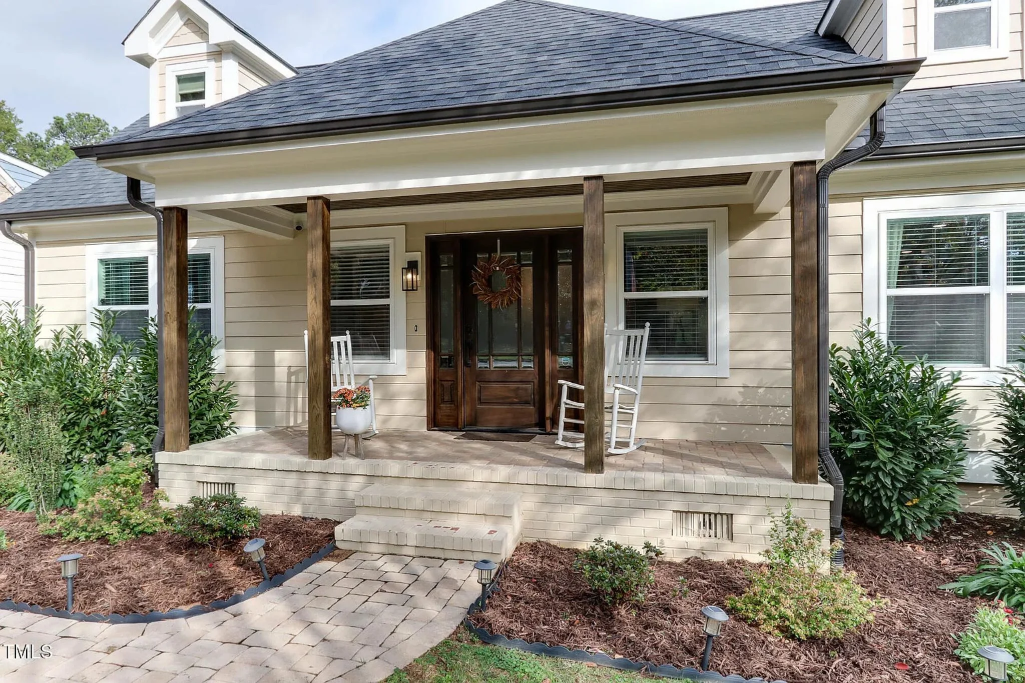 - Covered front and rear porches offer spaces to relax or entertain outdoors.