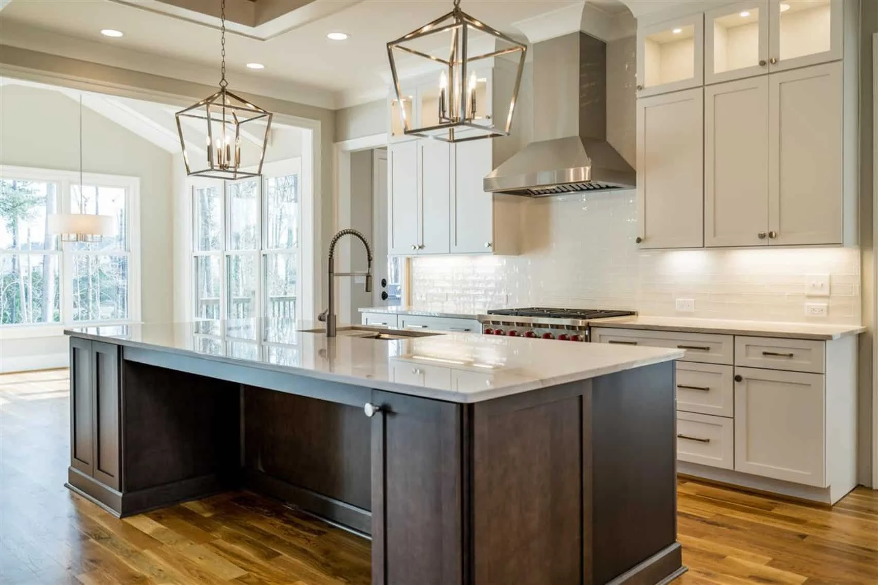 - Chef’s kitchen with island, breakfast nook, and large pantry.