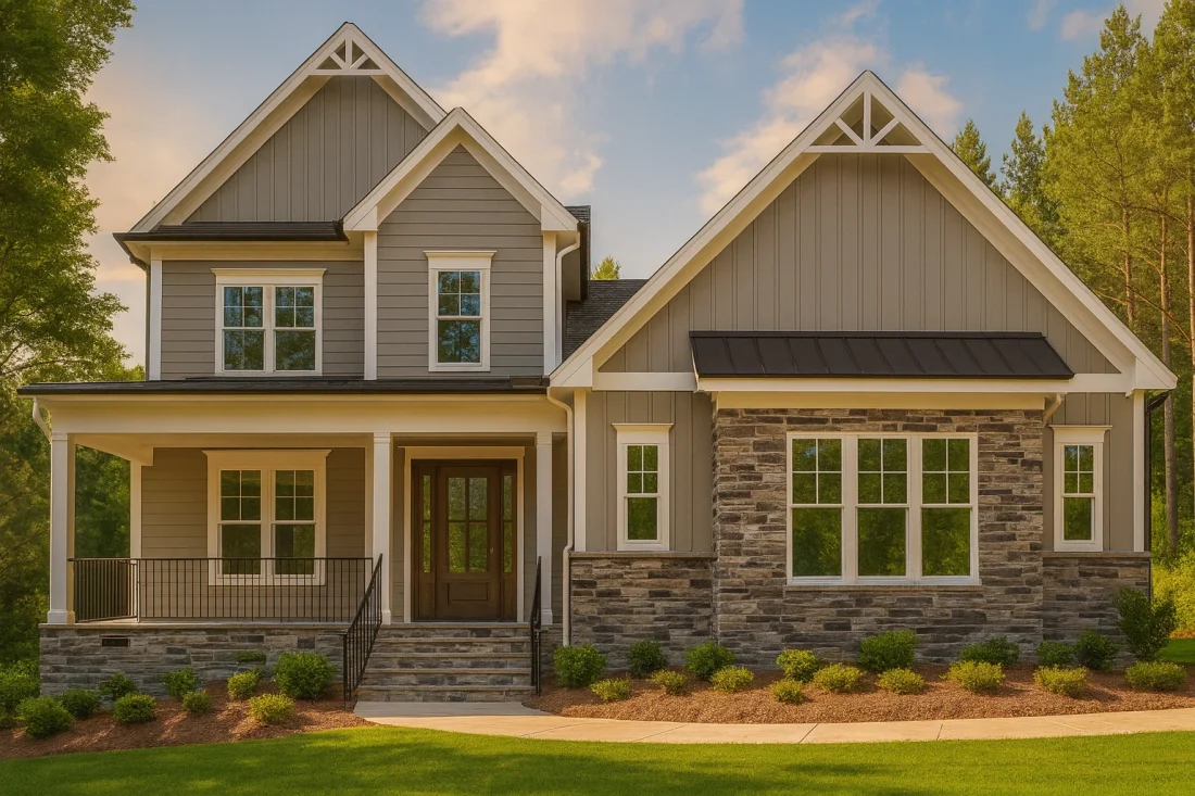 - Primary Siding: Vertical board and batten for a clean, upscale appearance