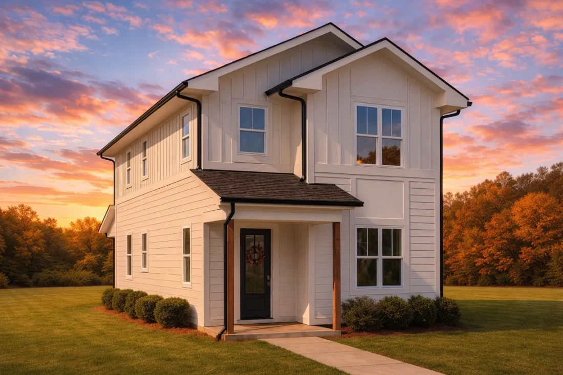 - Durable board-and-batten siding for a timeless farmhouse look