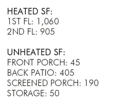 - Unheated extras: 690 sq. ft. including screened porch, front porch, and rear porch.
