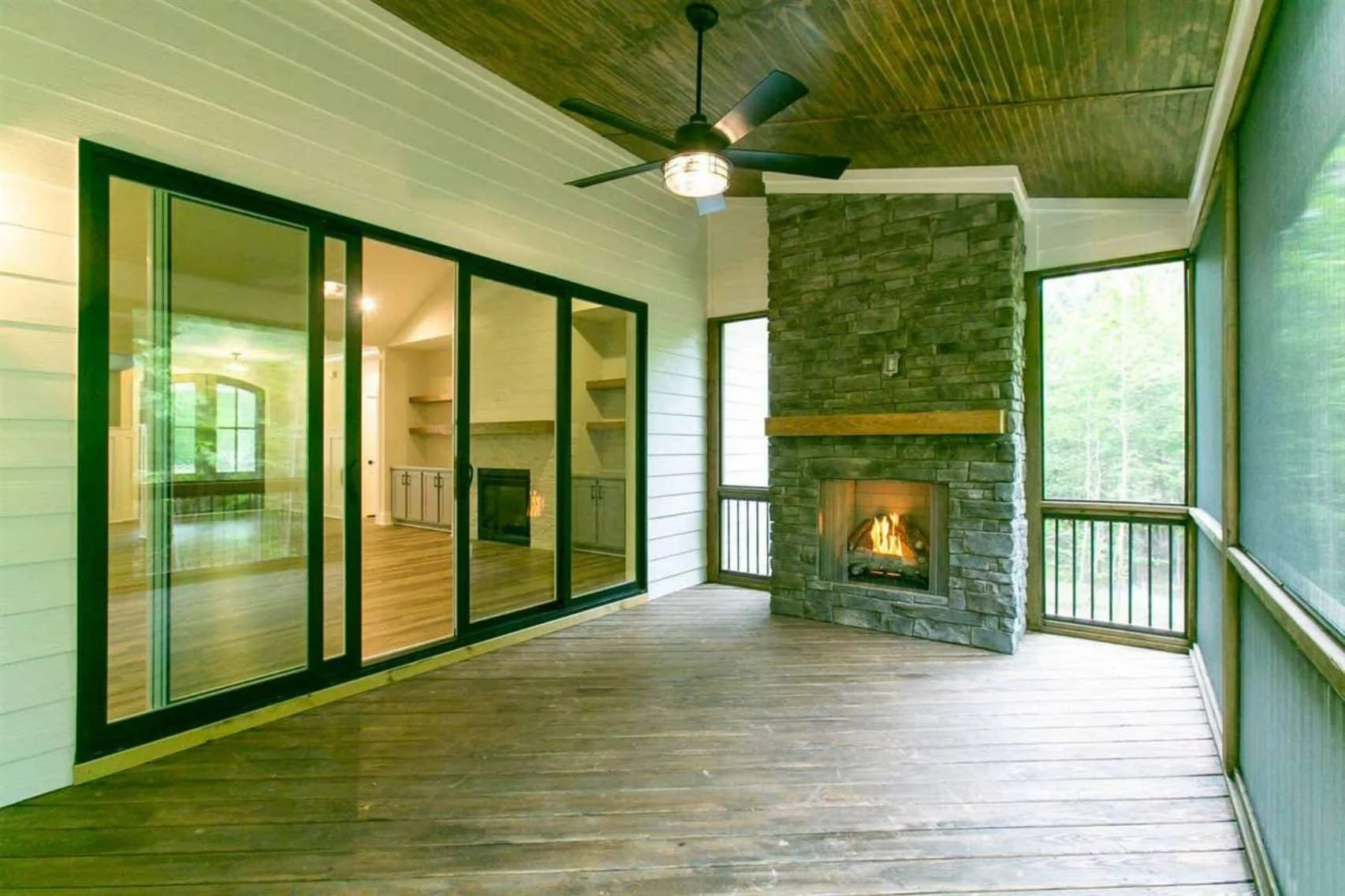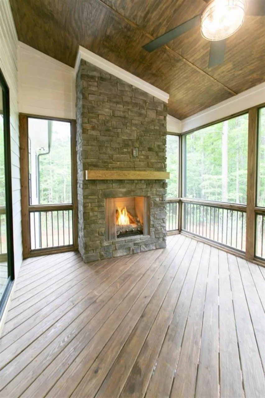 Are the porches covered and usable year-round? Absolutely. Both the front and screened back porches are designed for comfortable outdoor living.