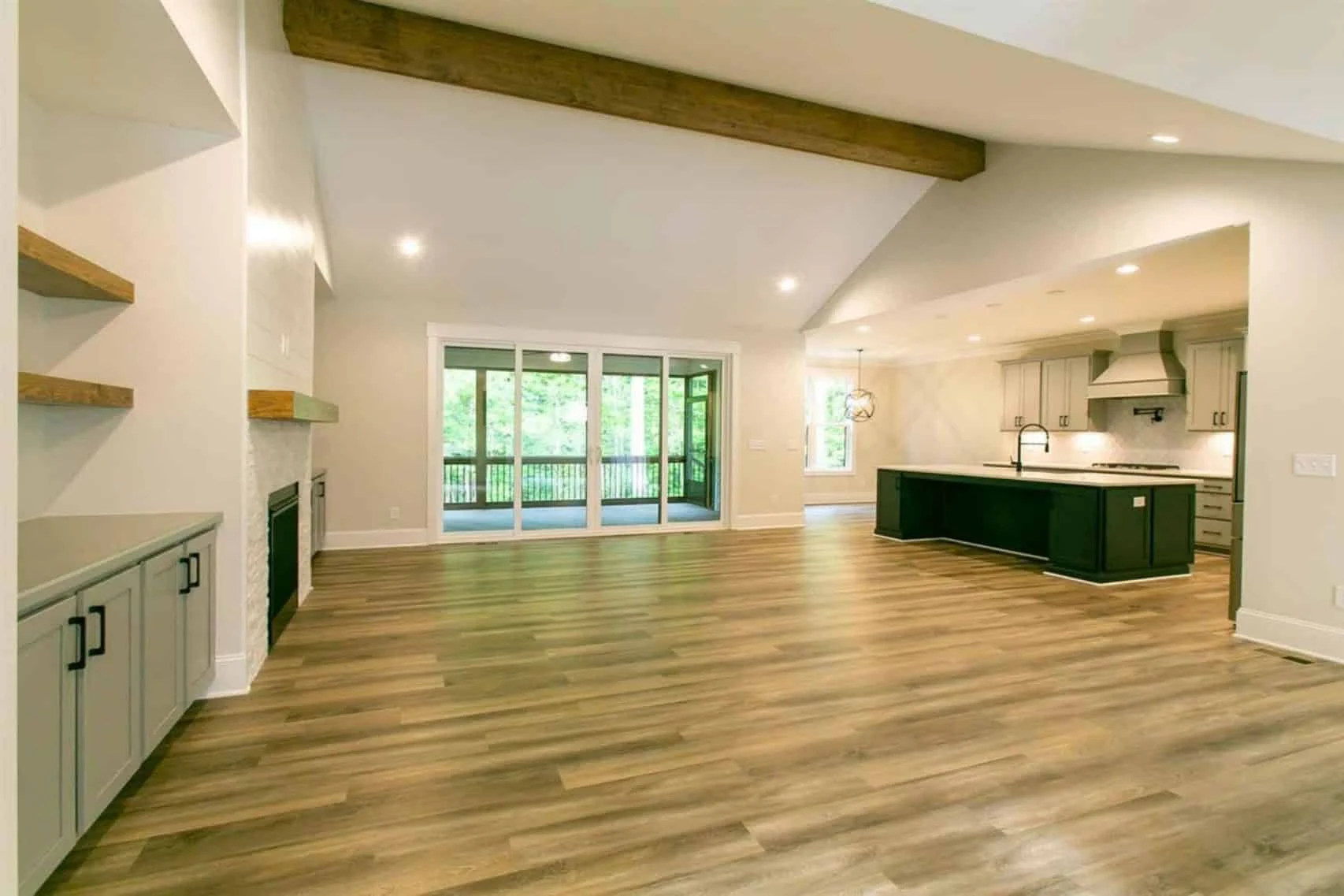 - Vaulted ceilings in the great room offer an expansive and airy atmosphere.
