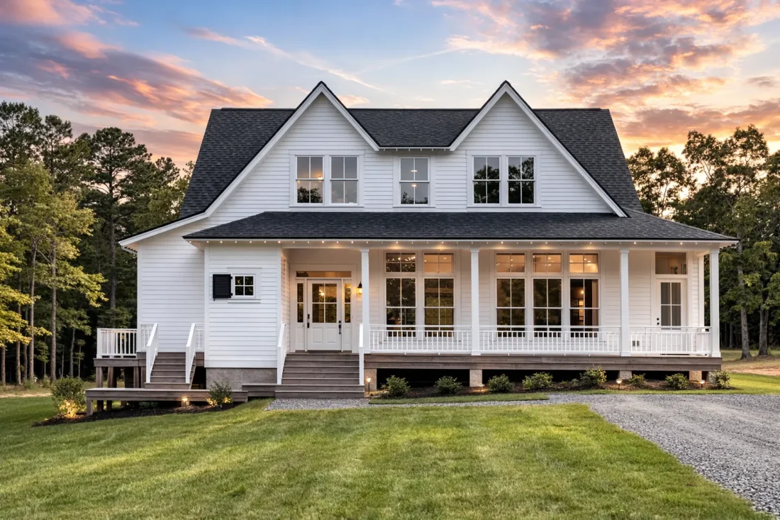 - Unheated extras: Covered front and back porches, screened porch, balcony, and detached garage with optional living space above.