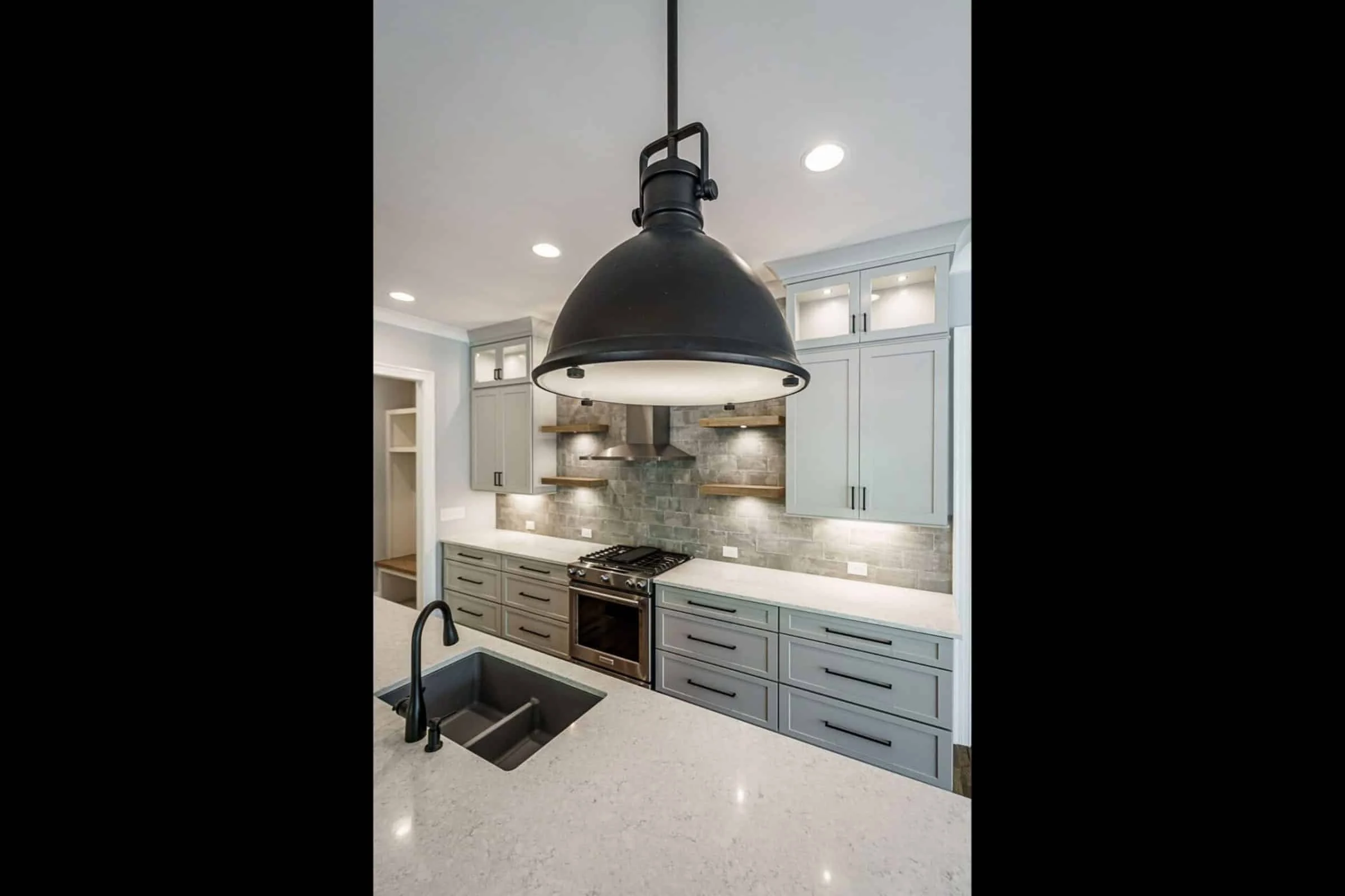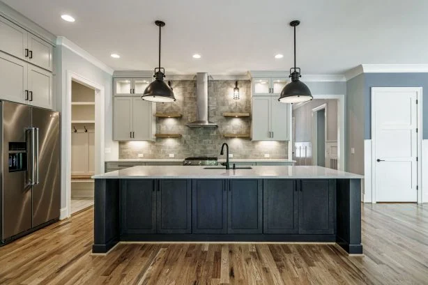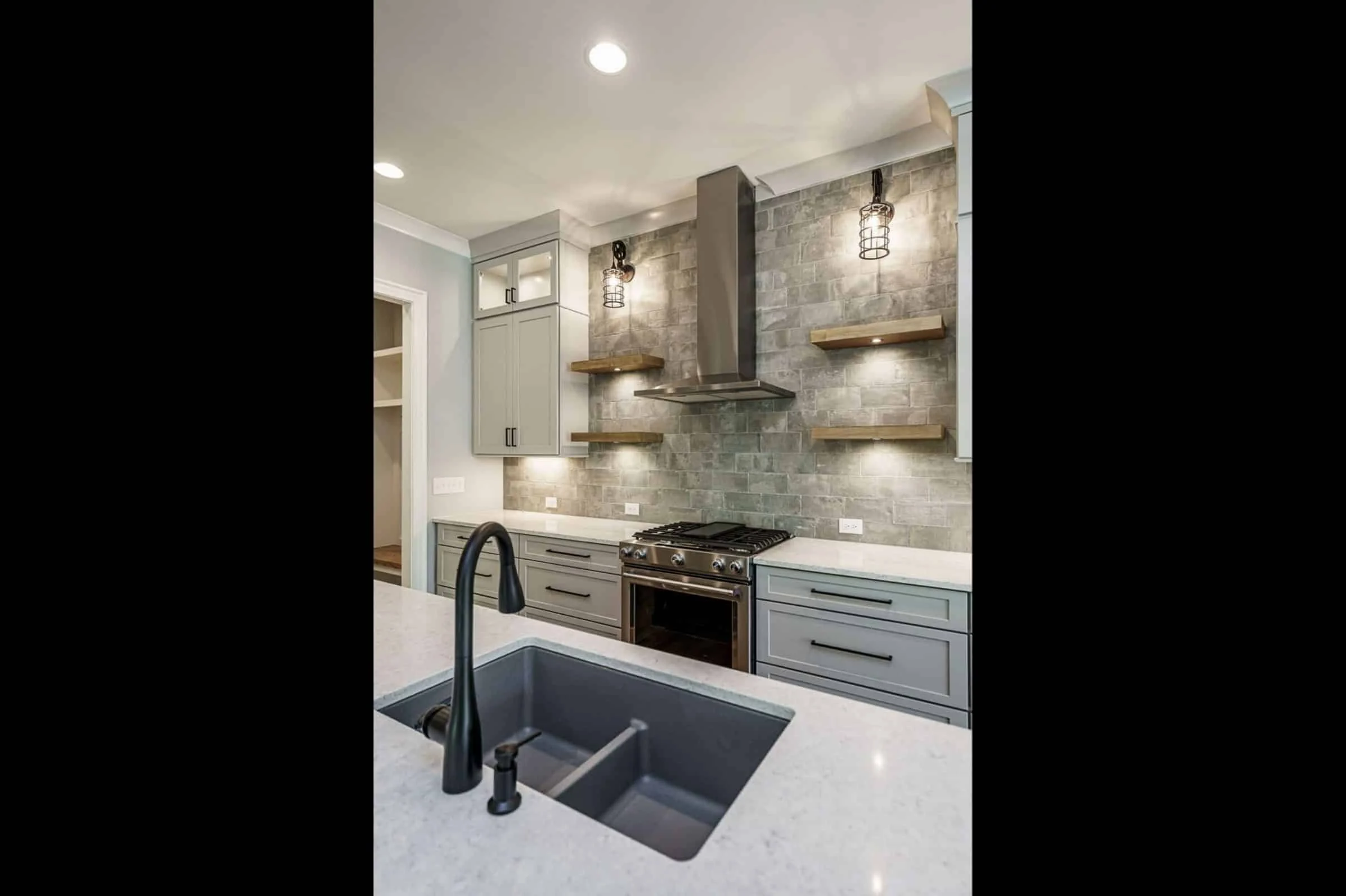- Kitchen island paired with a walk-in pantry and breakfast nook.