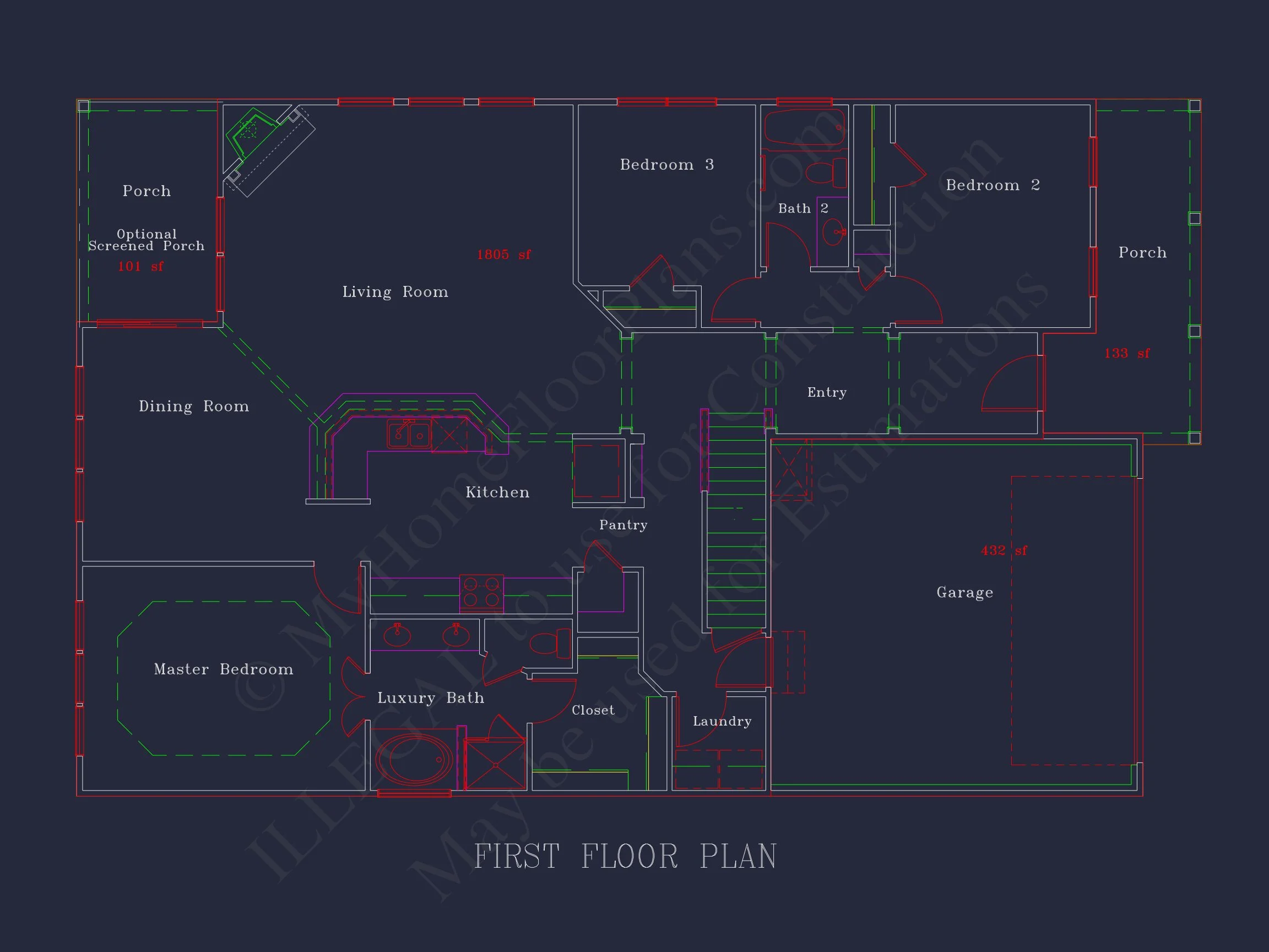 My Home Floor Plans, Inc. does not assume liability for any deviations in the plans. All information must be confirmed by your contractor prior to construction. Dimensions govern over scale.
