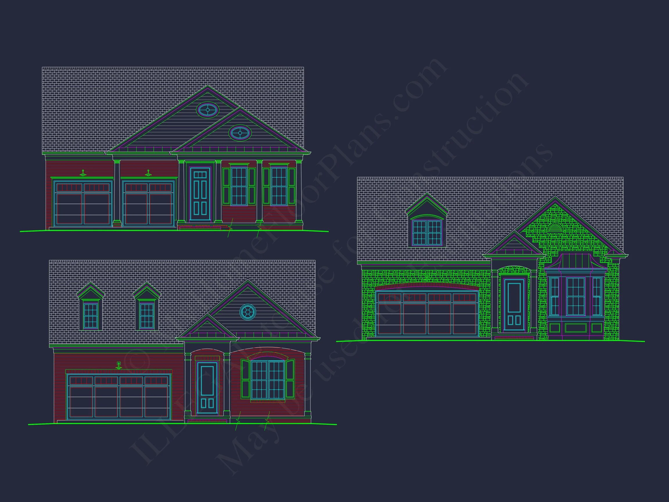 Elegant 1-Story House Plan with Classic Architecture and CAD Blueprints