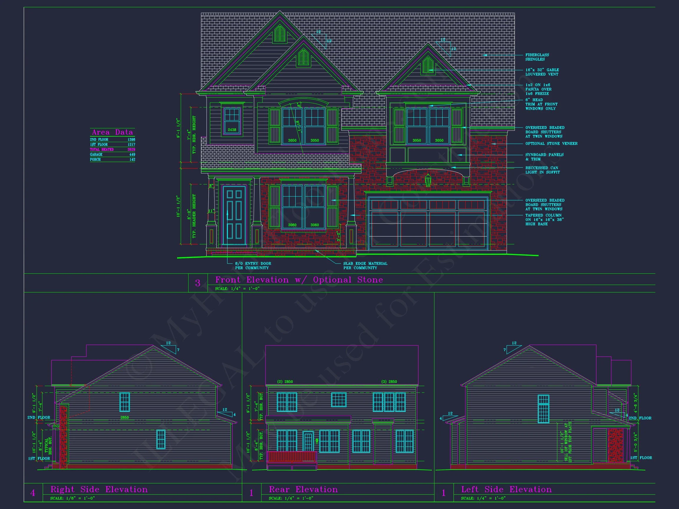 Explore this elegant 2-story, 4-bedroom house design with 2,629 heated sq. ft., open-concept floor plan, and CAD blueprints for seamless building.