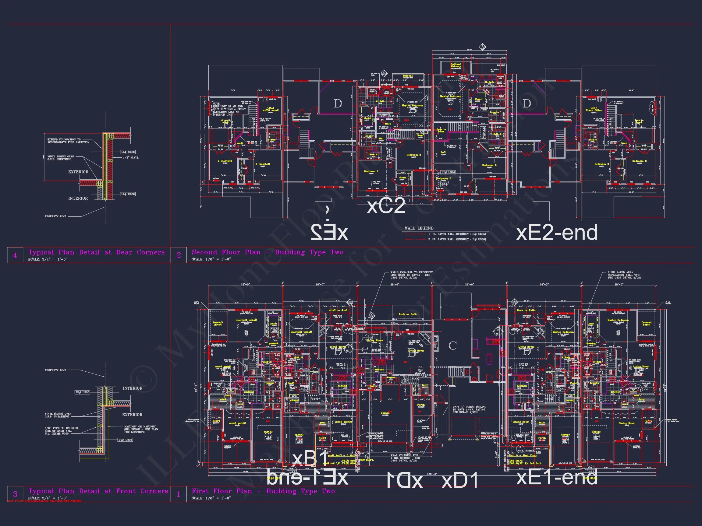 8-1930-3 TOWNHOUSE PLAN – Spacious 6-Bedroom Townhouse Plan | CAD-Ready Floor Designs