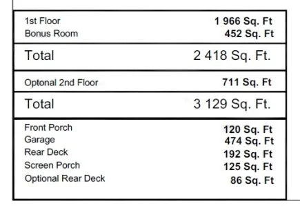 - Heated area: 3,129 sq. ft. total, with 2,418 sq. ft. on the main level.