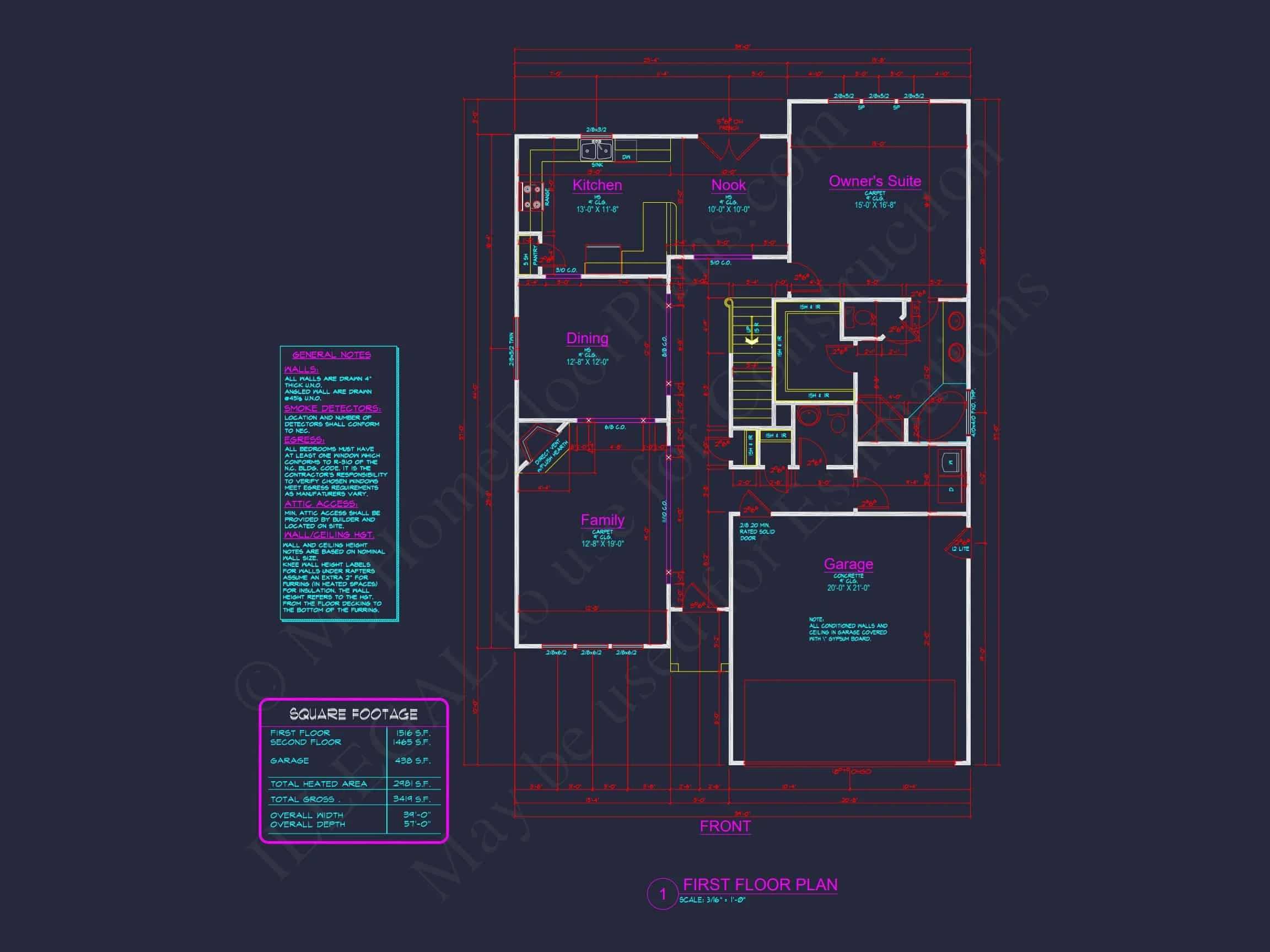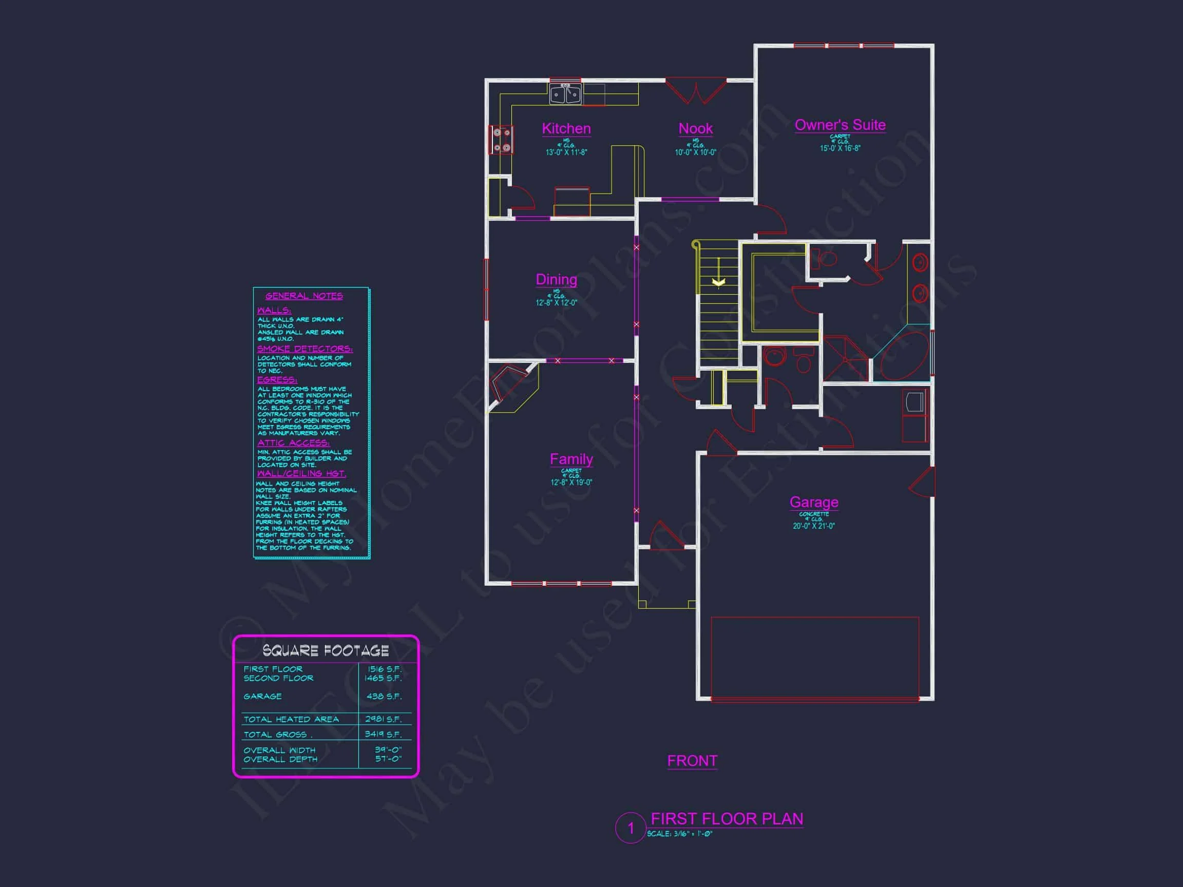 My Home Floor Plans, Inc. does not assume liability for any deviations in the plans. All information must be confirmed by your contractor prior to construction. Dimensions govern over scale.