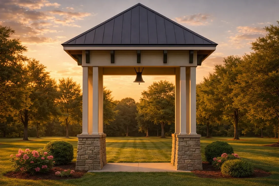 Whether used as a bell pavilion, wedding backdrop, garden shelter, or clubhouse amenity feature, this design adapts seamlessly. Its restrained ornamentation allows landscaping, lighting, and site context to enhance the structure rather than compete with it.
