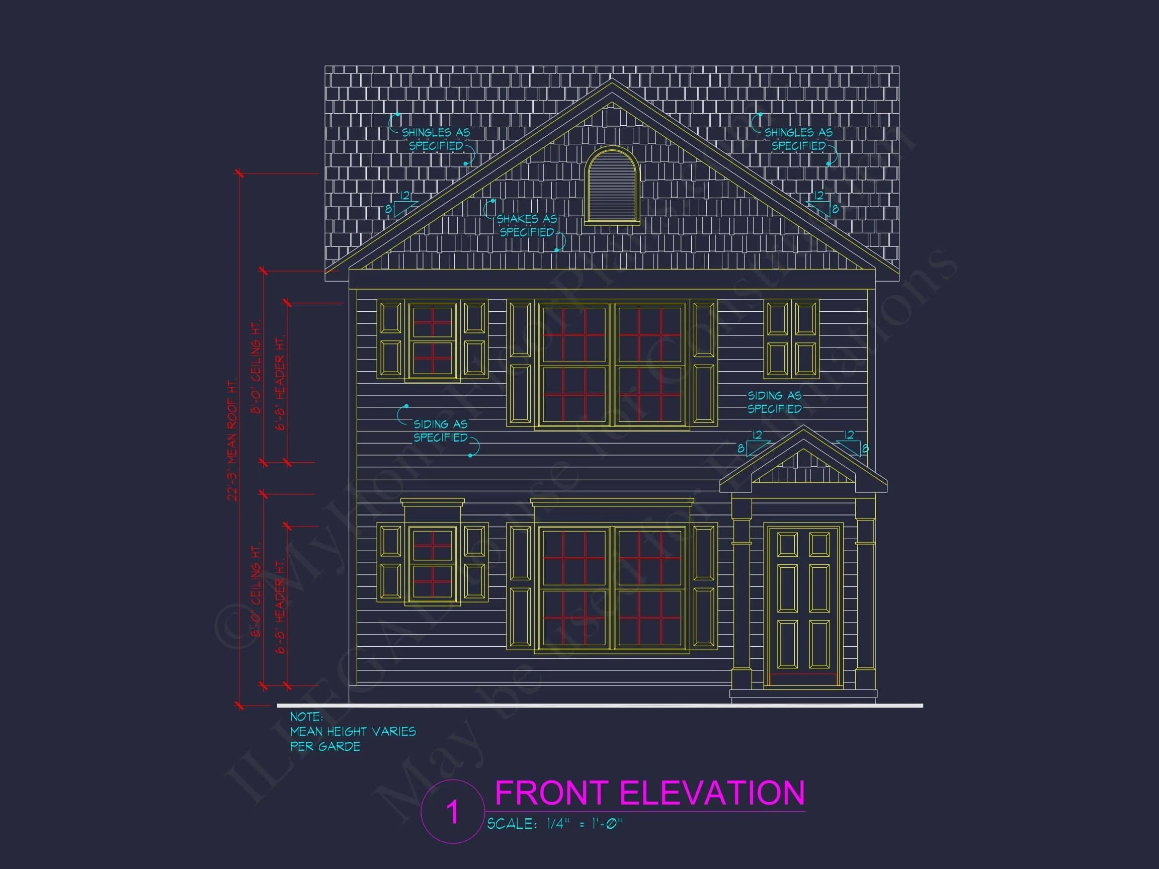 - Shingle and siding façade with a modern front elevation.