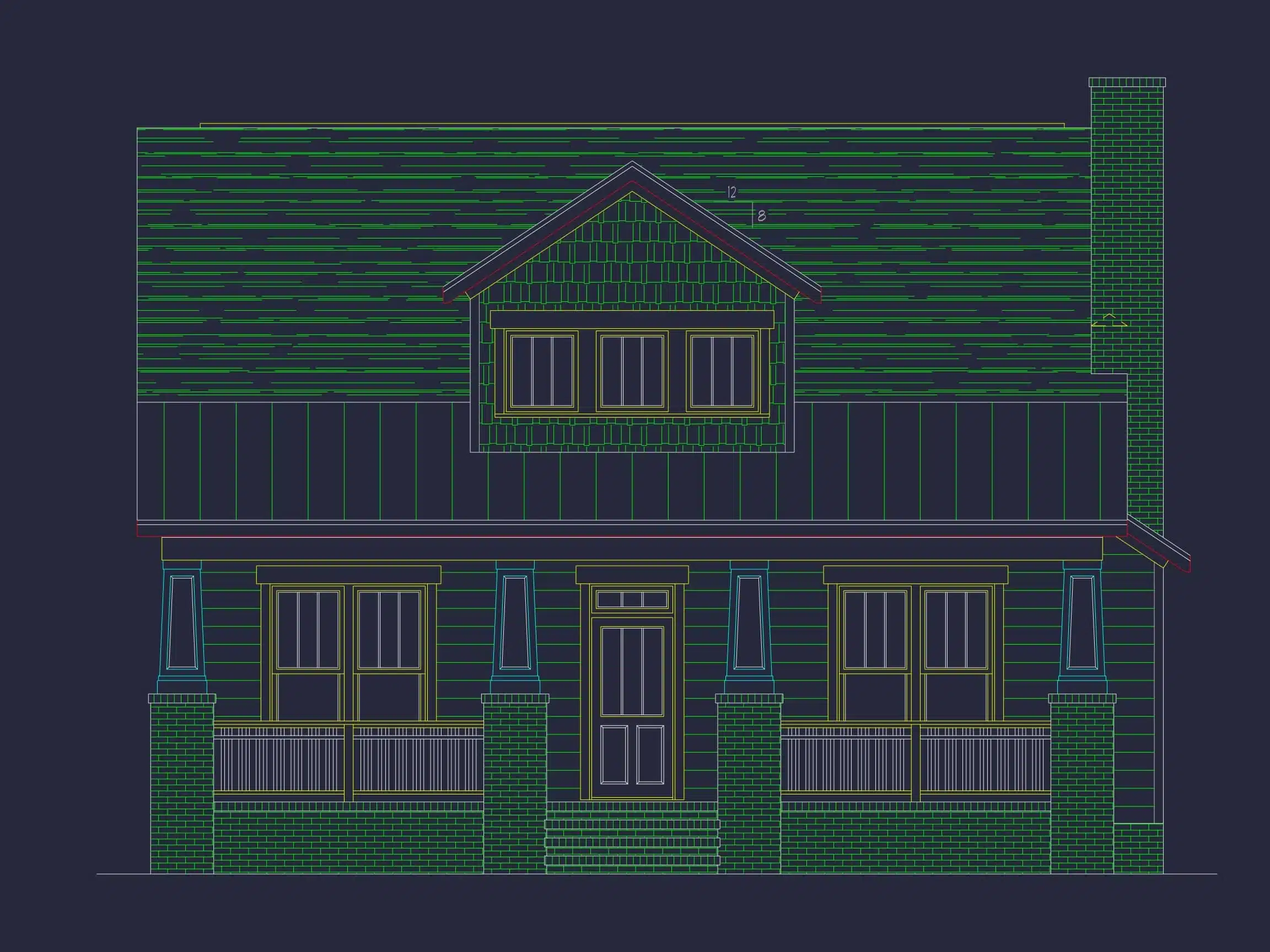 This design draws from New England cottage traditions—compact, inviting, and functional. The gable roof and centered dormer reflect classic Cape Cod architecture with simplified detailing and proportional symmetry.