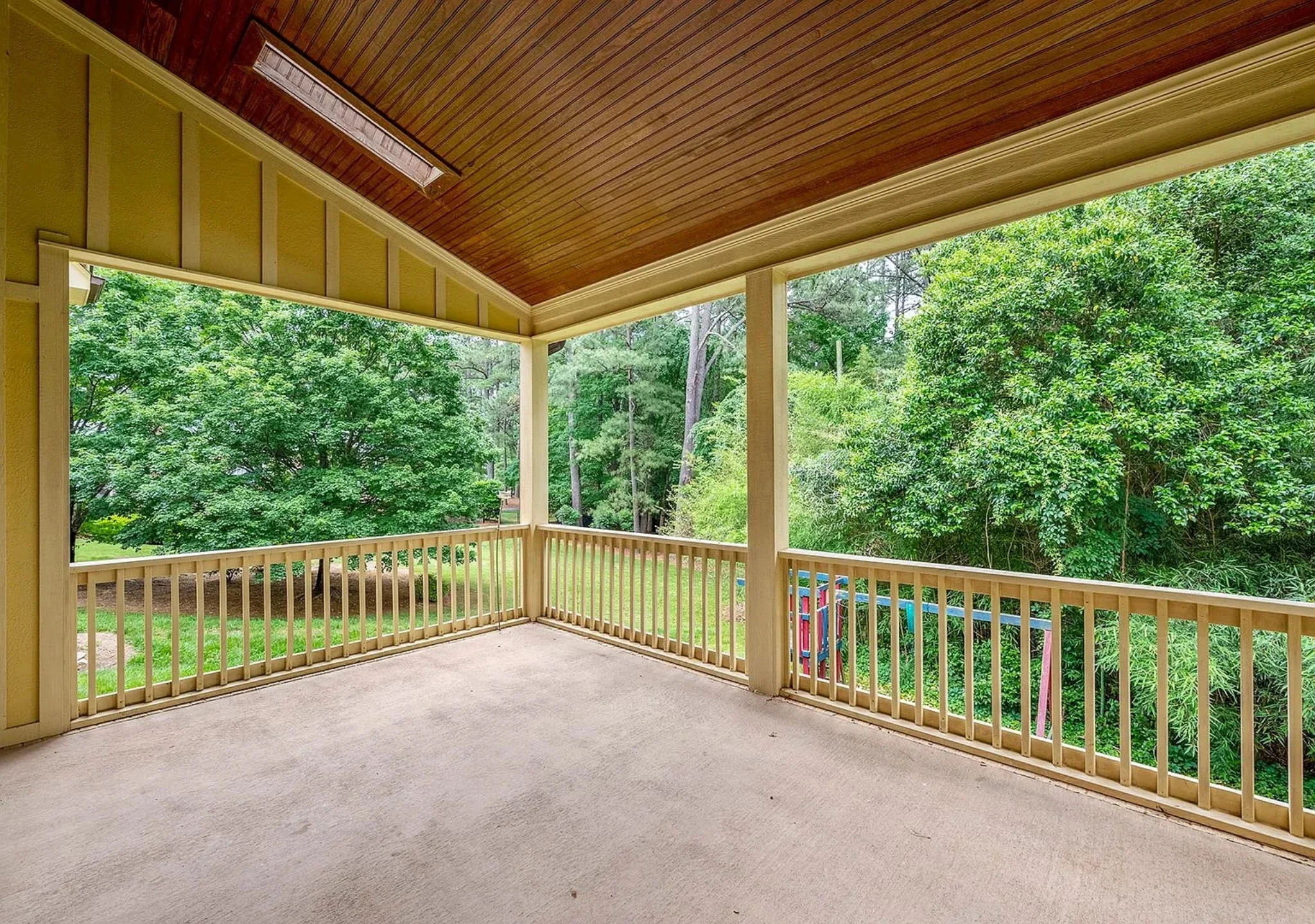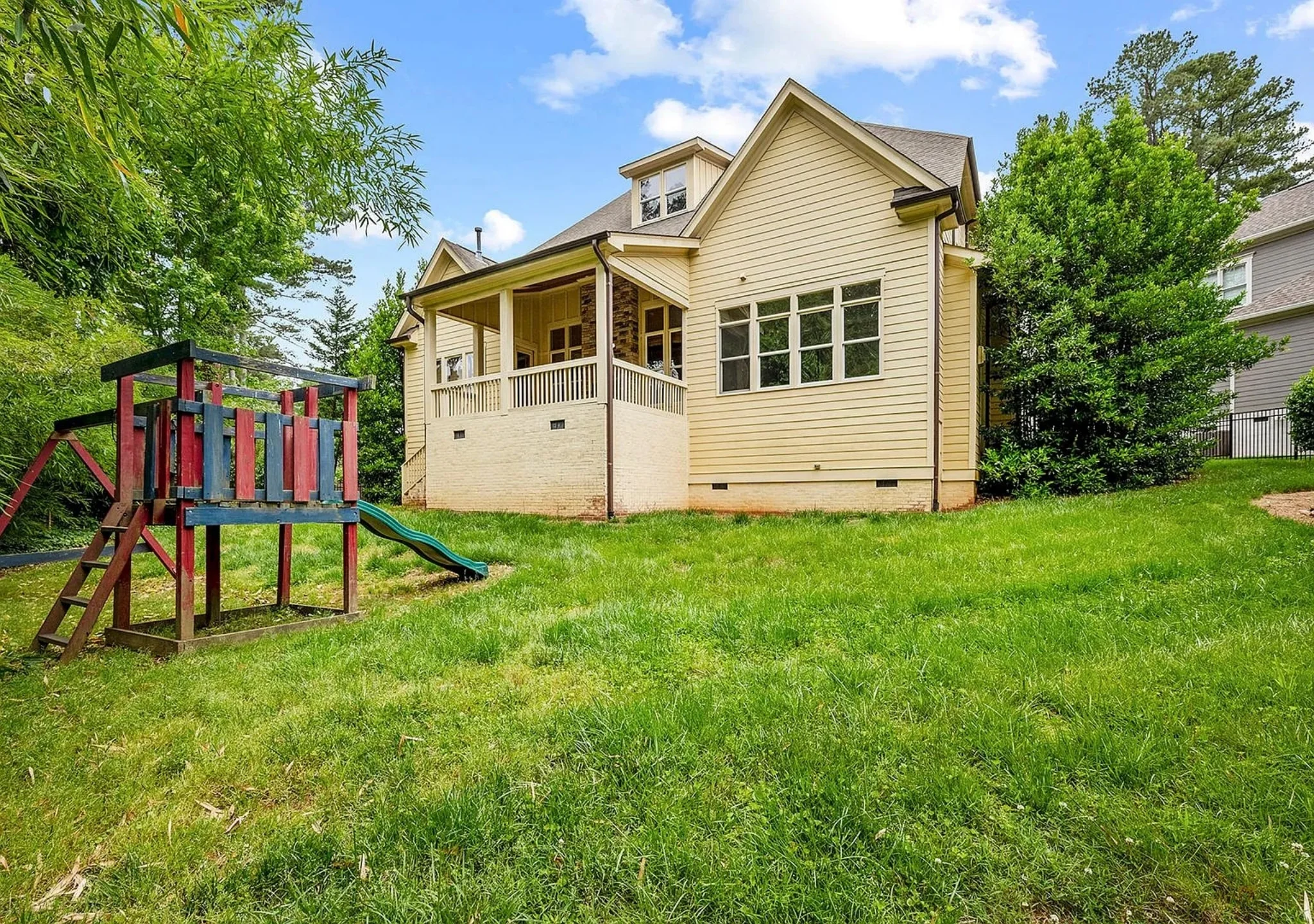 - Covered front porch adds character and weather protection for guests.