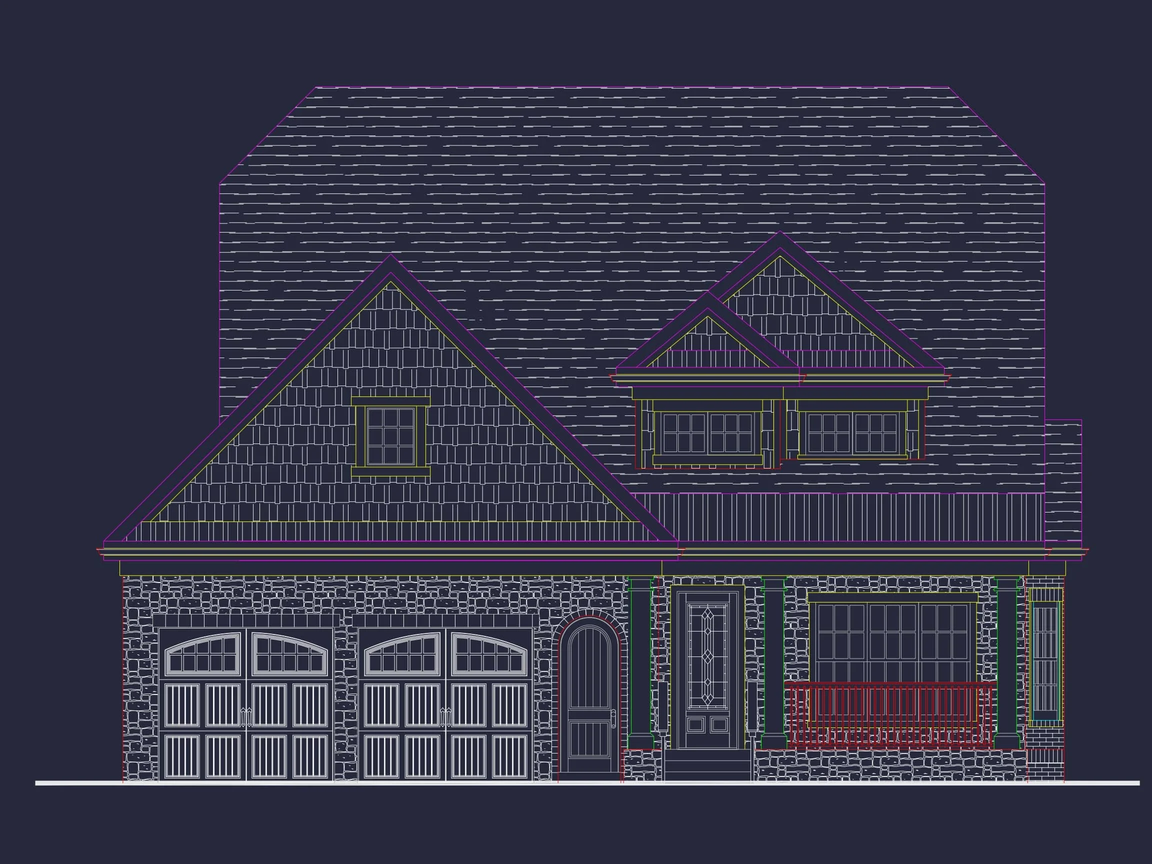 Explore this stunning 2-story house plan with 4 bedrooms, 4 baths, and 4,052 sq. ft. Designed with CAD precision, featuring vaulted ceilings and open layouts.