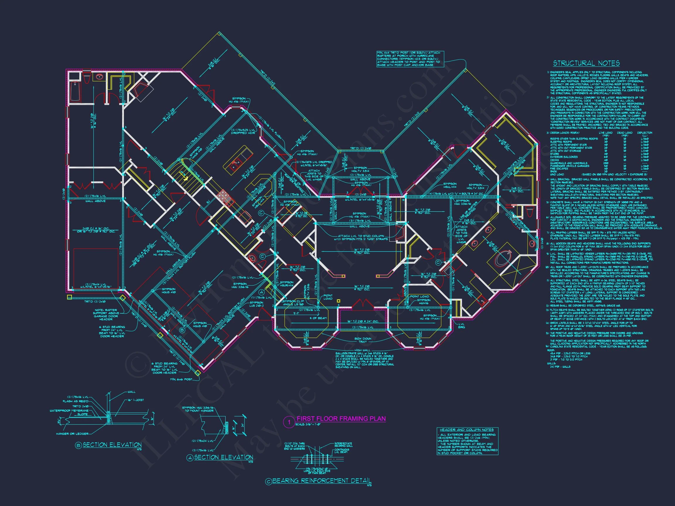 - Structural Engineering – Included with every plan unless not shown in the product images. Very helpful and reduces engineering time dramatically for any state. *All plans must be approved by engineer licensed in state of build*